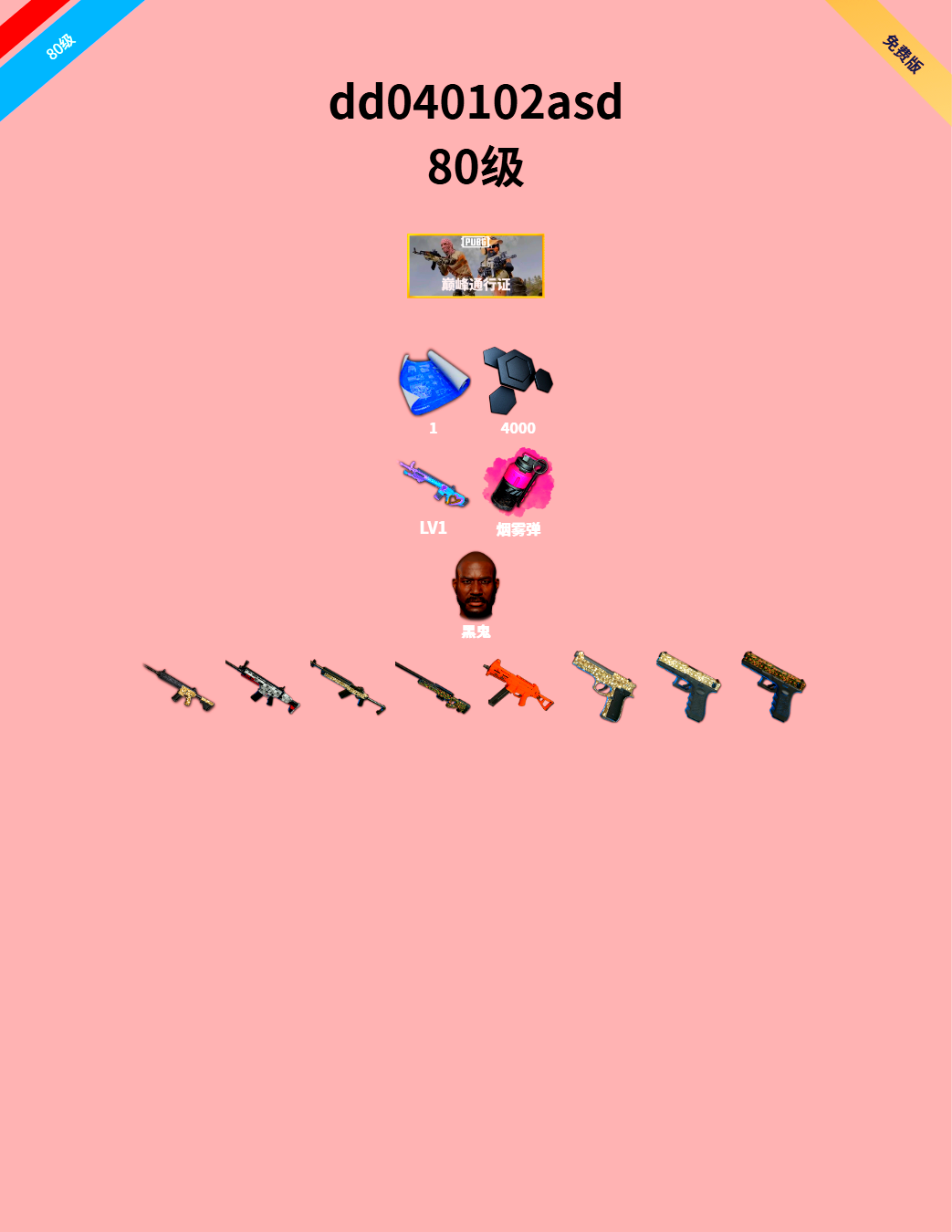 免费版 1张图纸 4000聚合物 1级魔咒之力Mk12 品红色烟雾弹 黑鬼