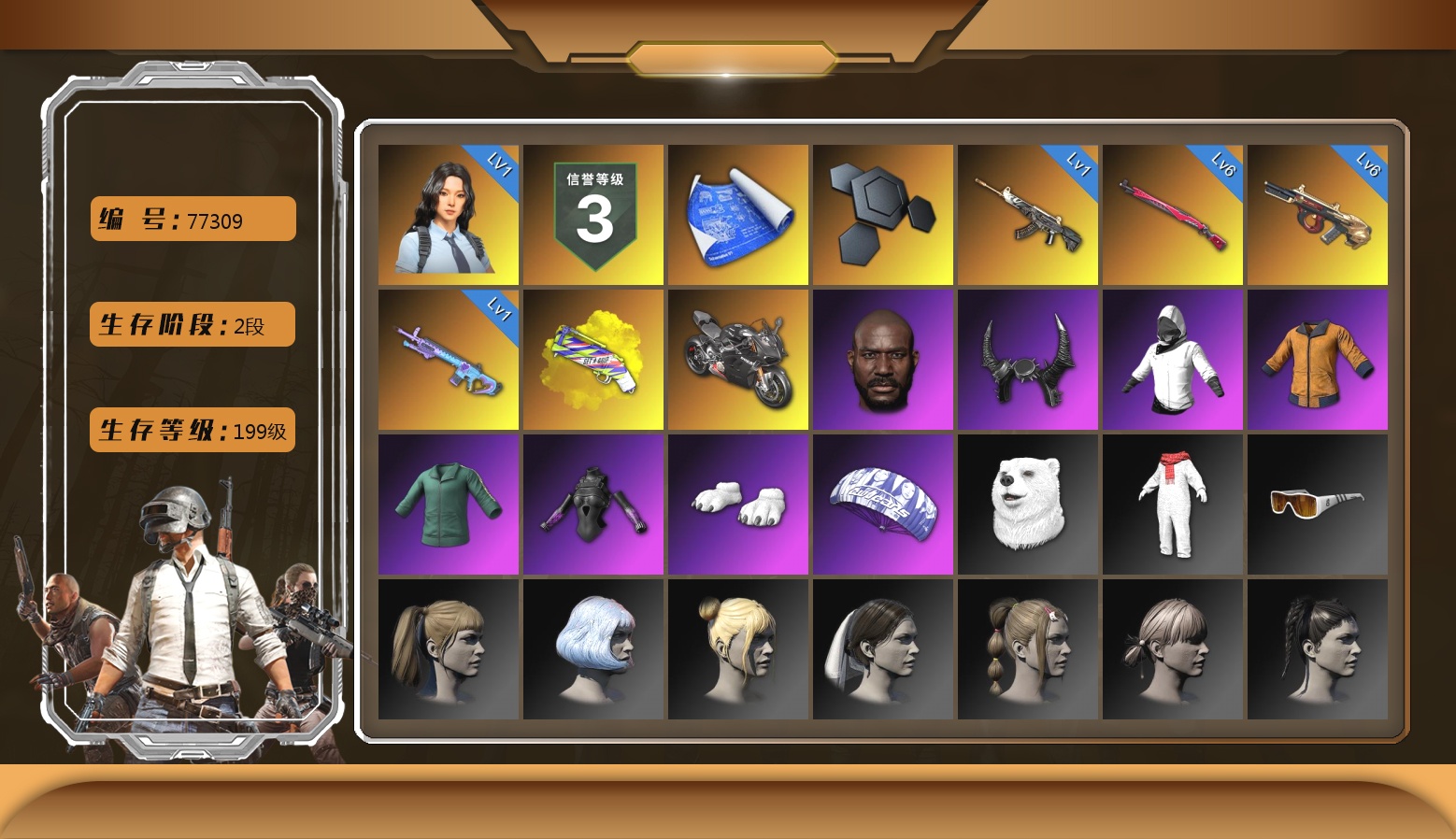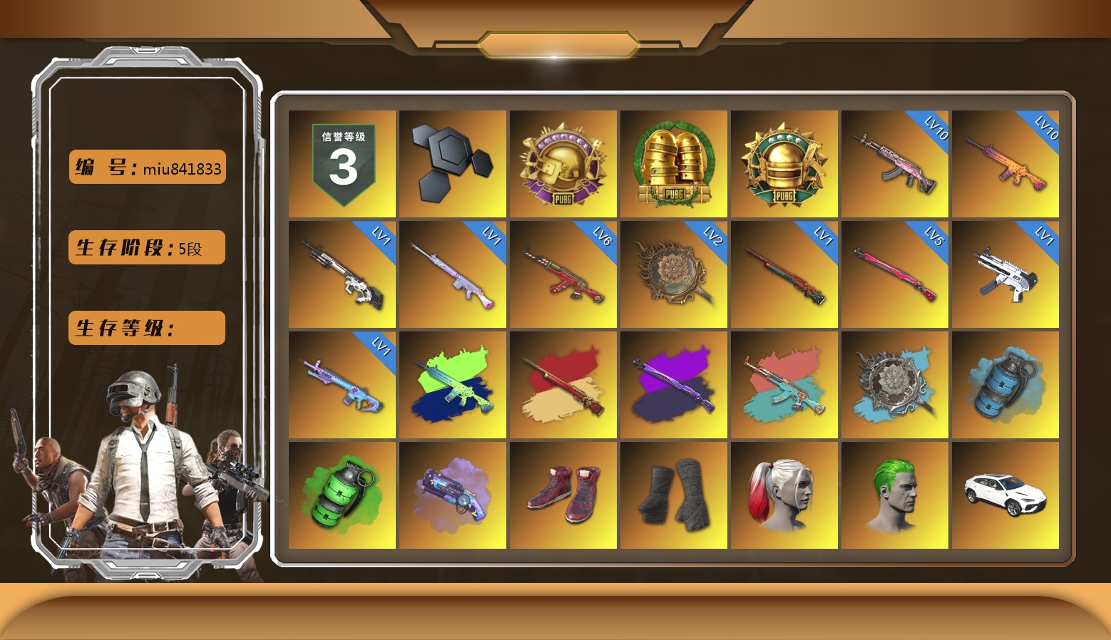 10级火麒麟 10级南瓜M4 6级圣诞AK 5级午夜惊魂98K 2级唐三藏平底锅 1级赛博MK12 1级玩偶炮 1级孙悟空M24 1级无重力MP5K 1级魔咒之力Mk12 南瓜M4(异色) 孙悟空M24(异色) 午夜惊魂98K(异色) 圣诞AK(异色) 唐三藏(异色) 天蓝色烟雾弹 翡翠色烟雾弹 紫色魔法迷雾-M79 柏林鞋 黑绷带 小丑女 小丑男 兰博基尼SUV 迈凯伦硅质白版 冬季藏匿处 交易所接待室 6748聚合物 收割者金标 捕食者金标 丑男妆容 马东锡 黑鬼 康萨斯 牛角 滑雪镜 红面巾 黑大衣 小战神 发光手臂 竞猜裤 白熊鞋 萨芬裤 粉战神 aespa女团 滑雪帽 小黄鸭 拉风龙 鸡斯卡夹克 小马尾 小绿头 粉头 丸子头 西游记 青海摇 小兔学院 悲喜 PGC 2021套装 枪炮洗礼