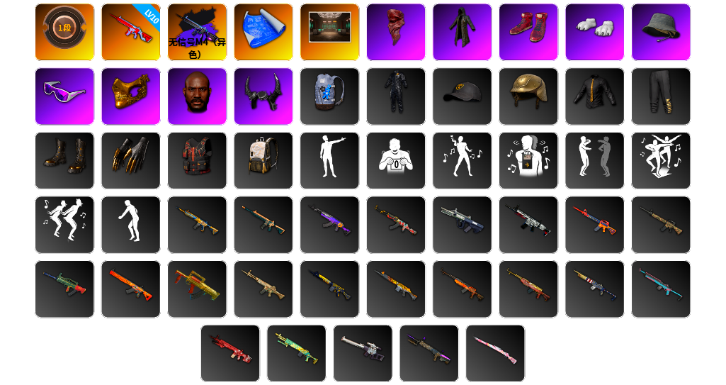 生存1阶段 10级无信号M4 无信号M4(异色) 图纸 交易所接待室 红面巾 黑大衣 柏林鞋 白熊鞋 渔夫帽 滑雪镜 金面 黑鬼 牛角 小兔学院