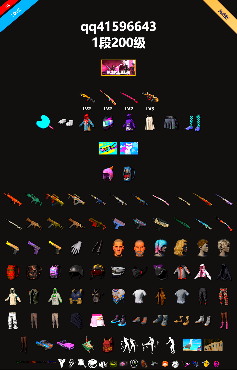 免费版 2级小兔MK12 2级德拉贡 2级午夜惊魂98k 3级弥诺陶洛斯AUG 白熊鞋