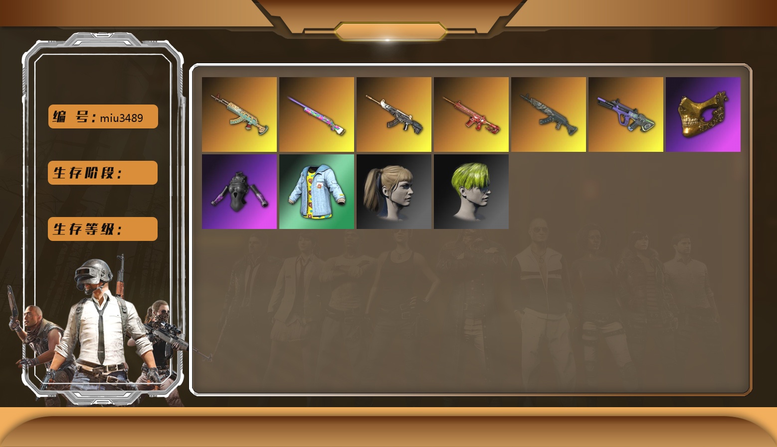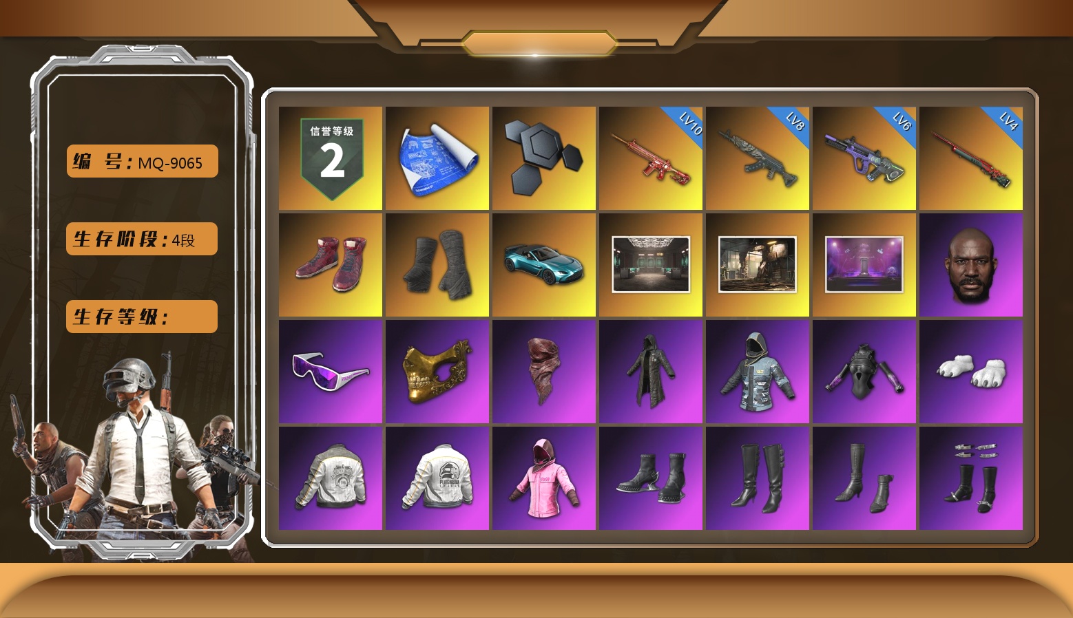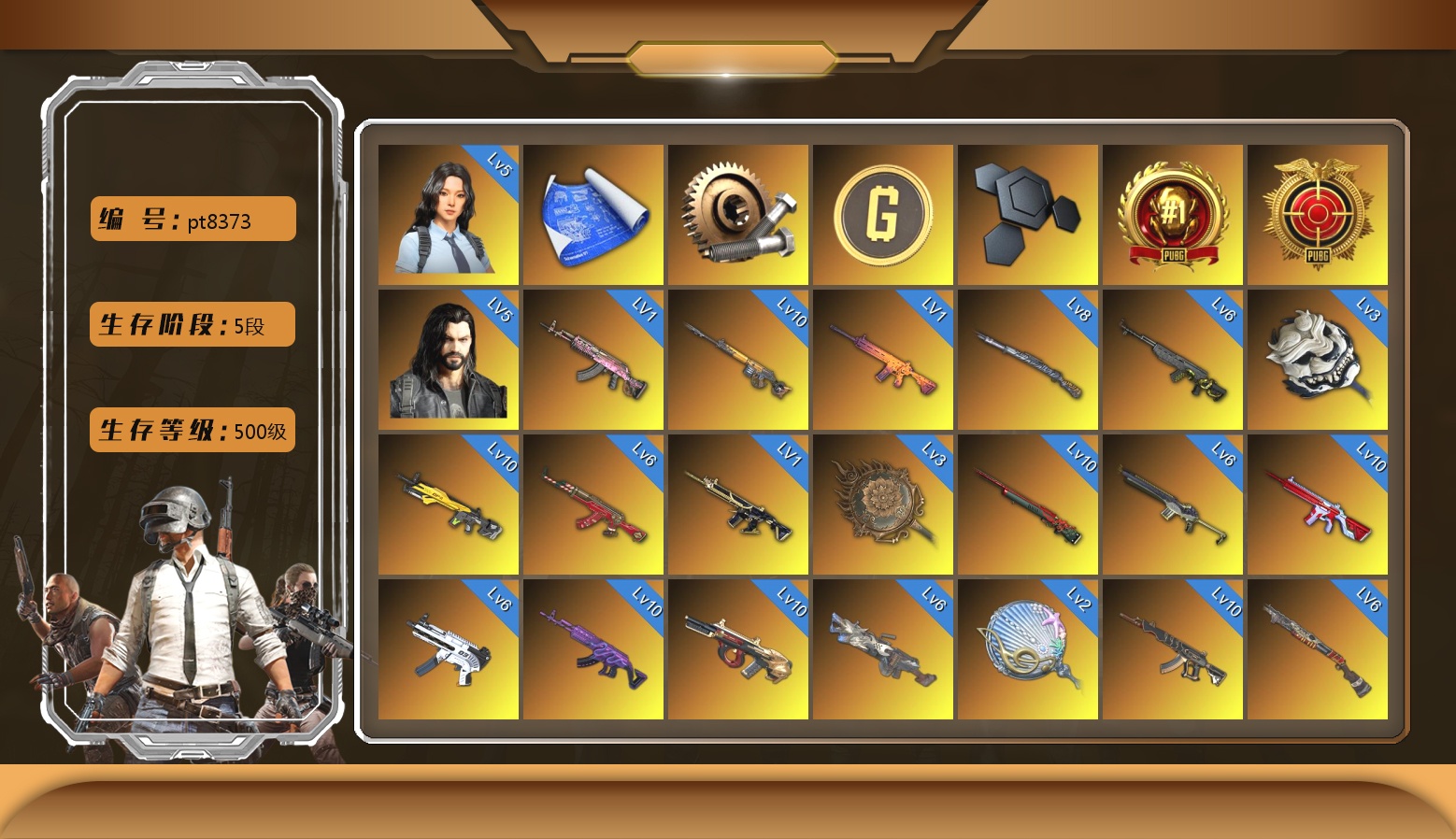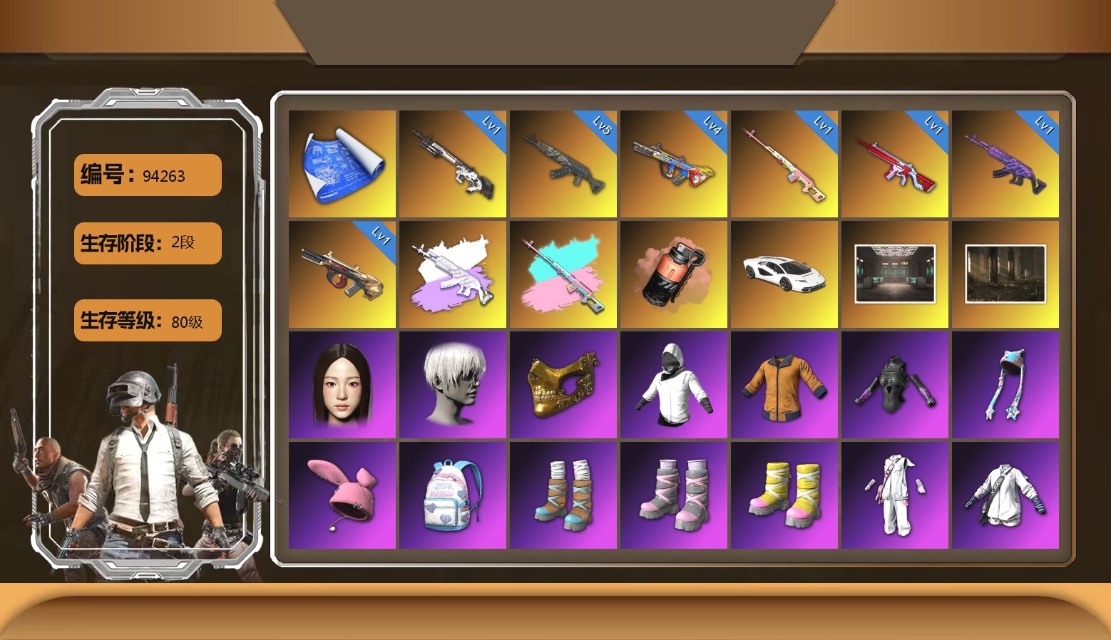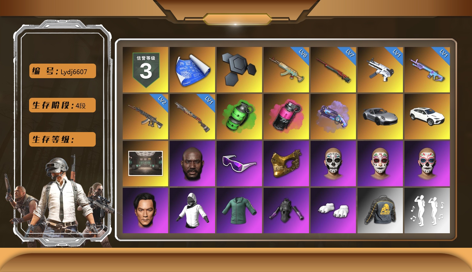法-1509 1102级 信誉等级3 齿轮762 10级 赛博朋克mk12 4级 猪八戒m4 2级 独角兽m24 猎手ace 时光sks 兰博基尼suv 悲喜套 尼尔套 悲喜战神套 2021pgc黄金面具 拉风龙套 黄东南亚 白战神
