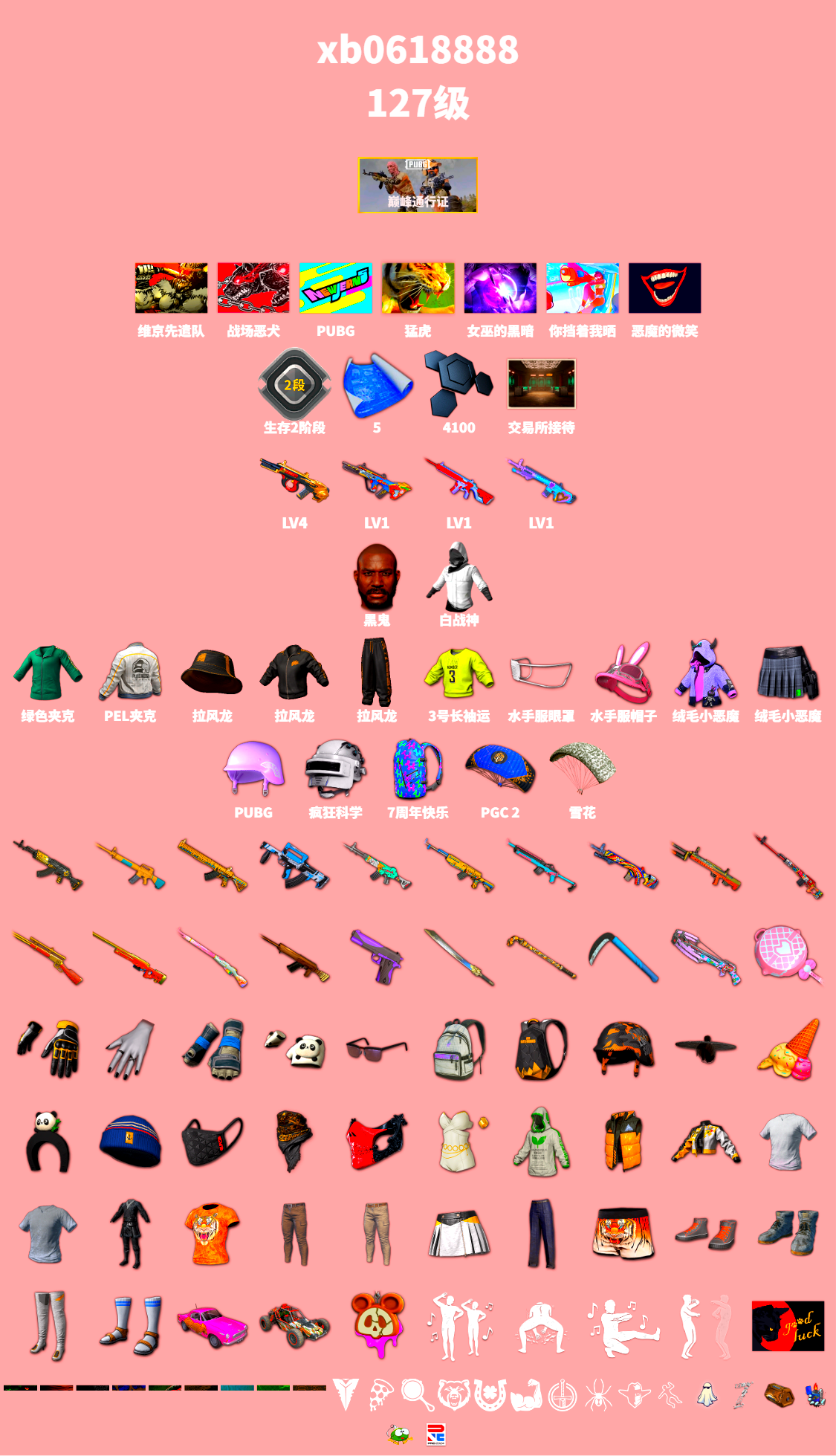 免费版 生存2阶段 5张图纸 4100聚合物 4级弥诺陶洛斯AUG 1级爆裂AUG 1级无信号M4 1级魔咒之力Mk12 交易所接待室 黑鬼 白战神 活动绿东 拉风龙 小兔学院