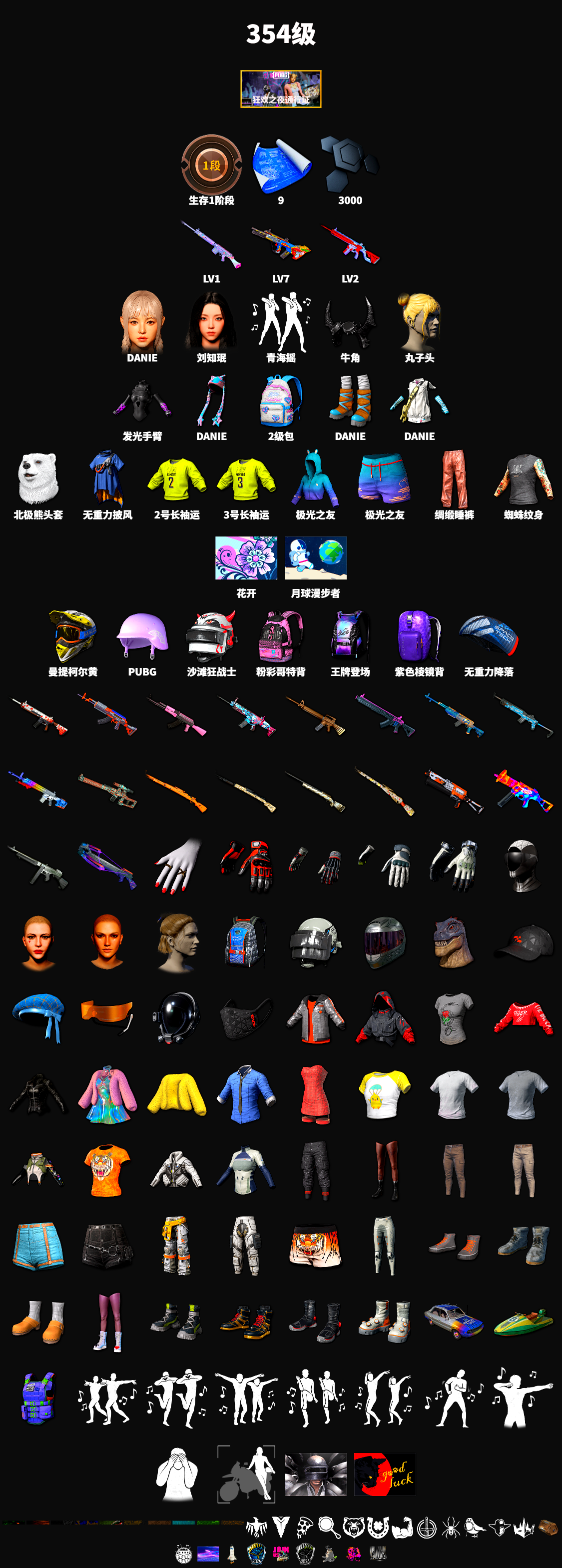 生存1阶段 9张图纸 3000聚合物 1级玩偶炮 7级爆裂AUG 2级无信号M4 牛角 发光手臂 aespa女团 丸子头 青海摇