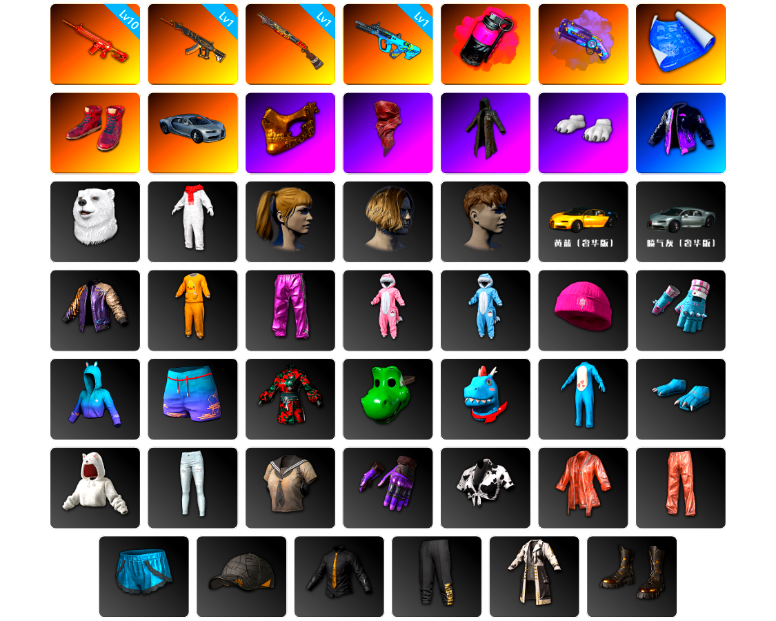 8级弥诺陶洛斯AUG 1级朱雀M4 1级刻耳柏洛斯M249 蓝色魔法迷雾-M79 柏林鞋 保时捷卡宴 马丁跑车 交易所接待室 1张图纸 2956聚合物 红面巾 黑大衣 白熊鞋 小马尾 丸子头 青海摇 小兔学院