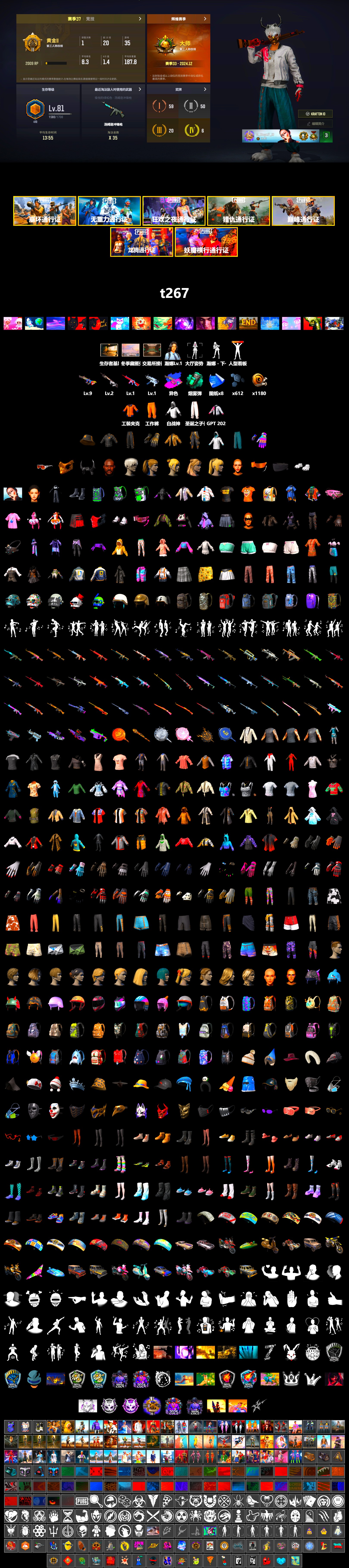 ❤找回包赔❤皮肤:9级爆裂AUG 2级赛博MK12 1级瀚娜 1级无信号M4 1级无重力MP5K 爆裂AUG(异色) 青色烟雾弹 冬季藏匿处 交易所接待室 信誉等级三 8张图纸 612聚合物 9s发型 黑鬼 牛角 金面 白战神 黄东 发光手臂 白熊鞋 萨芬裤 aespa女团 宁艺卓 尼尔 拉风龙 NPL夹克 PJS夹克 Aixleft 北极熊连身衣 “魔力甜心萨莉” 两栖装甲车 Number 小马尾 丸子头 发型21 发型41 人型看板 1级包 3级包 电波干扰背包 日光下澈凉鞋 丝滑夏日凉鞋 日光下澈丛林短裤 日光下澈热带短裤 丝滑夏日短裤(白色) 丝滑夏日短裤(橄榄绿) 日光下澈丛林上衣 日光下澈热带上衣 丝滑夏日上衣(白色) 丝滑夏日上衣(橄榄绿) 无重力披风 斑斓危机 工作裤 战术科技裤 圣诞老人 特工小兔长袖上衣 特工小兔长裤 棉花糖手套 棉花糖马甲 极光之友 极光之友 蓄势待发 柴犬帮 兄弟同盟 怨恨小姐 怨恨小姐 怨恨小姐 怨恨小姐 棉花蕾丝连衣裙 绒汪汪 奶牛印花短裙(棕色) 维寒迪雪上运动夹克 维寒迪长裤 鸡警 鸡警短裤 绸缎长袖 绸缎睡裤 头号主播 战术科技夹克 2025夹克 晚餐幻象纹身 小恶魔纹身 蜘蛛纹身 金墨点染 金墨点染 群雄逐鹿 金墨点染 2级包 开拓者墨镜 开拓者手套 开拓者上衣 开拓者夹克 强袭者短鞋 开拓者短鞋 萨莉的T恤 魔力甜心萨莉的礼服(粉红色) 萨莉的皮鞋 萨莉的礼服 萨莉的长靴 萨莉的皮鞋 萨莉2级头 萨莉2级包 小兔航天局 小兔学院 绒毛小恶魔夹克 绒毛小恶魔短裙 绒毛小恶魔圆头鞋 兔兔也朋克腿套 发型60 发型59 拉风龙AK 拉风龙SLR 平底锅 aespa - 平底锅 [战场痕迹] aespa - Mini14 aespa 背包(2级) 烤鸡节服饰套装 3 绒汪汪服饰套装 萌虎下山套装 蓝仙女套装 夜伴花开旗袍套装 高档服饰套装 咖啡王制服套装 牛年服饰套装 2 夏日沙滩风情服饰套装 拉拉队队服套装 金毛柴犬帮套装 暗影之星的服饰套装 小兔快递仓管套装 卡通学院套装 暗龙军团套装 禁忌闪光套装 钞能力套装 高科技时尚小兔套装 打工小兔套装 花卉印花套装 蛇蝎美人套装 军用套装 检察官套装 神射手套装 狂热爱恋套装 兴致索然套装 都市女牛仔服饰套装 反光夹克俱乐部套装 亮片炫彩套装 绯红新星套装 不毛之地套装 疯狂护士套装 疯狂患者套装 铁娘子套装 曼提柯尔黑色越野摩托服套装 骷髅脸特技服套装 小兔航空航天局套装(粉) 小兔航空航天局套装(白) PCS6 浓墨重彩服饰套装 皇室套装 肌肉套装 皇室摔跤手套装 卡拉金休闲服套装 大麻烦套装 艾利克斯面具套装 朱莉的夹克套装 马尔霍特拉的夜行套装 老奶奶的睡裙套装 小可爱睡衣套装 光滑丝质套装 深红战警套装 PGC 2019套装 PCS2套装 小兔学院水手服套装 铁血警官套装 棉花蕾丝套装 圣诞型男套装 沙滩兄弟套装 秀出你的六块肌套装 惊涛骇浪套装 PNC 2023 强袭者套装 符文袭击者套装 节日派对套装 星际小兔套装 1 晚秋-M416 雪国风光 - M416 蟒蛇花园 - M416 [战场痕迹] 黄道猎手 - M416 内永枝利 宁艺卓 守护兽的凝视 PGC 2023 皇冠宝石 - Beryl M762 节日装饰 天际之眼 大猫狂怒 朱莉 女巫的黑暗仪式 PGC 2022 王牌登场 - Beryl M762 双龙出海 疯狂科学:狂热 起起伏伏,眉头紧蹙 月球漫步者 双狼成行 魔力甜心萨莉的挚友 - AKM 灵魂枷锁 - AKM [战场痕迹] 瓦尔哈拉 - ACE32 PNC 2023 完美角度 - ACE32 假日精神 - SCAR-L 银河卫士 - SCAR-L 鸡斯卡 - SCAR-L 皇家舰队 - M16A4 恶战 - M16A4 [战场痕迹] 猩红时刻 - M16A4 分形几何 - QBZ 分秒必争 - QBZ 奥丁的先锋 - Mk47 Mutant 分形几何 - G36C 山花烂漫 - Groza 无拘来世 - K2 [战场痕迹] 漫彩四溢 - SLR 赛季35竞技铂金 - Lynx AMR 魔力宝贝 - SLR 银河小队 - SKS [战场痕迹] 漫彩四溢 - SKS [战场痕迹] 破碎元素 - Mini14 夏日冲浪 - Mini14 彩虹之上 - Mini14 彩虹四溢 - Mk12 赛季31竞技铂金 - Mk14 雪国风光 - Mk14 紫色雨滴 - VSS 蟒蛇花园 - QBU 睡衣派对保护者 - 德拉贡诺夫 [战场痕迹] 猩红漫彩 - 德拉贡诺夫 拼图 - Win94 热浪 - Kar98k PNC 2023 完美角度 - Kar98k [战场痕迹] 镀金枪儿响叮当 - Kar98k 赛季36竞技水晶 - AWM 镀金 - AWM 兔女郎的蜜吻 - M24 彩糖蛋糕 - 莫辛纳甘步枪 海兽 - 莫辛纳甘步枪 睡衣派对保护者 - JS9 灰色系 - MP5K 赛季33竞技大师 - FAMAS 竞速之道 - P90 沙悟净 - P90 Poof! - PP-19 Bizon 彩虹之上 - UMP 银河小队 - UMP 愉悦的绿松色 - 汤姆逊冲锋枪 镀银 - 汤姆逊冲锋枪 渗透与破坏 - Vector 无信号 - Micro UZI 冲锋枪 [战场痕迹] 无重力 - M249 三重条纹 - DP-28 灰色系 - DBS 海藻自己上 - O12 镀金 - 锯短型霰弹枪 镀银 - S12K 这不是玩具 - S1897 华夫饼 - S686 恶战 - P92 数码沙漠迷彩 - P92 三重条纹 - 沙漠之鹰 复古浪潮 - R45 钴蓝呼号 - P18C 锦衣夜行佩刀 PUBG信条钢管 朋克战斧 海洋哑光(蓝色) - 镰刀 紫色雨滴 - 十字弩 你的第一锅 - 平底锅 碎瓜者 - 平底锅 8th Anniversary - Pan 午餐肉的护手绷带 赛博小兔手套 7周年快乐手套 秋日生存者手套 哥特戒指 维纳斯俱乐部手部装饰 沙滩宝贝美甲配手环 PCS7 手套 胜利收割者手套 工人手套(黑色) 准备就绪手套 铁血警官的手套 维寒迪雪上运动手套 朱莉的手套 虚空女巫手套 熊猫手套 雪片手套 暗影之星的手套 PGC 2022 战术科技手套 恶魔骑手手套 无重力中型手套 般若手套 无重力重型手套 豹子精手饰 金底耐磨手套 宇宙灵狐手套 无重力轻型手套 荣都学者眼镜 优雅夏日眼镜 死亡六进制太阳镜 朱莉的墨镜 日光下澈墨镜 恶魔骑手妆容 维纳斯面部妆容 匕首
