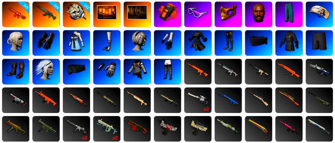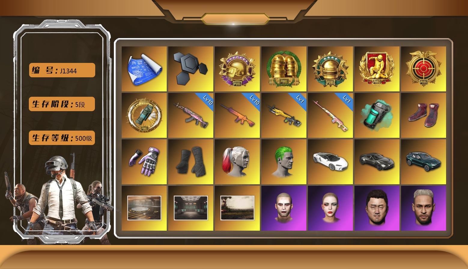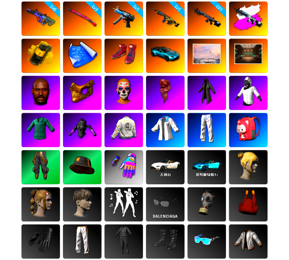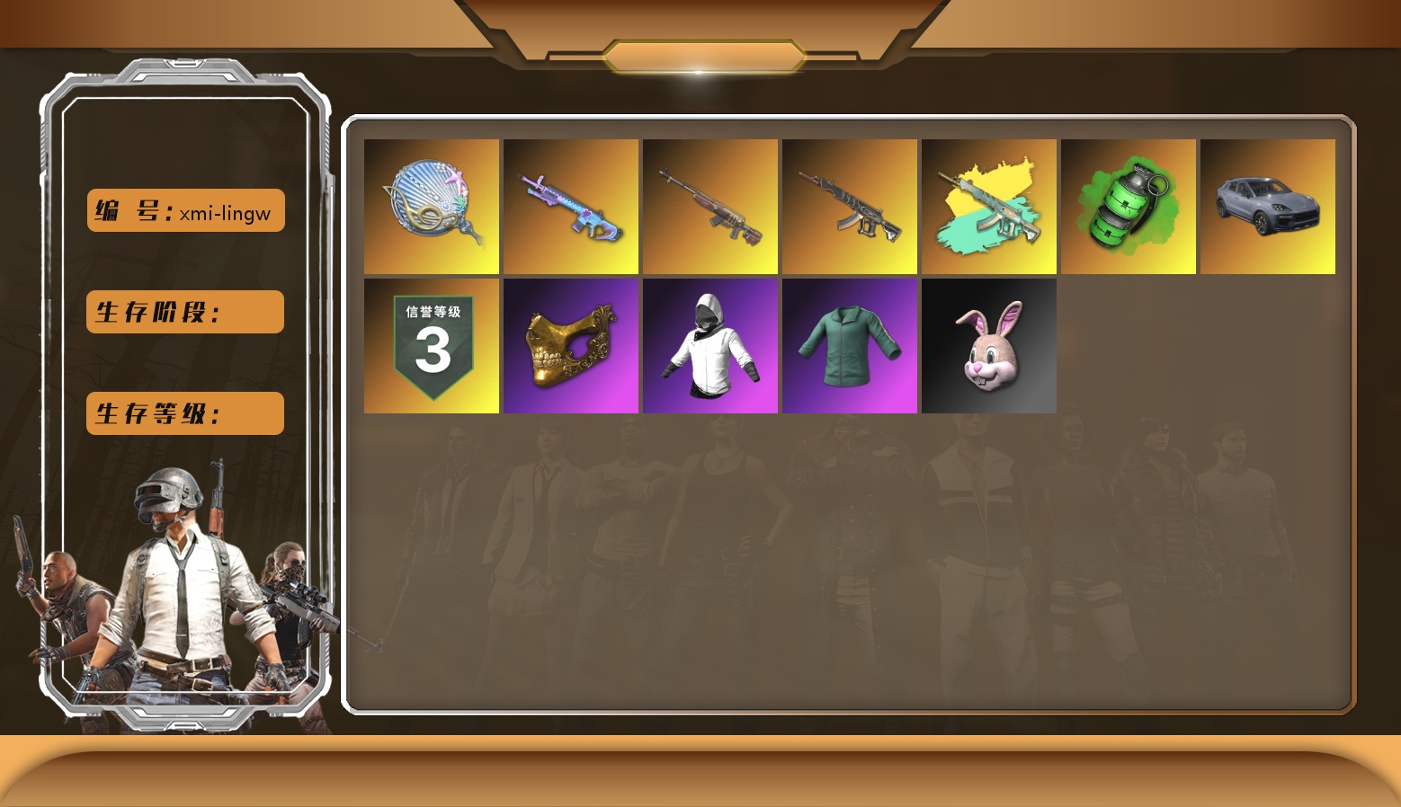 ID[273525][PZ3862]6级霓虹AUG 3级午夜惊魂98K 1级寒蚀MP5K 1级时空使者M4 1级暗影之主Mk12 暗影之主Mk12(异色) 黄色烟雾弹 张图纸 柏林鞋 马丁敞篷跑车 冬季藏匿处 交易所接待室 黑鬼 金面 红面巾 黑大衣 白战神 活动绿东 发光手臂 阿狸 拉风龙 车漆 丸子头 青海摇