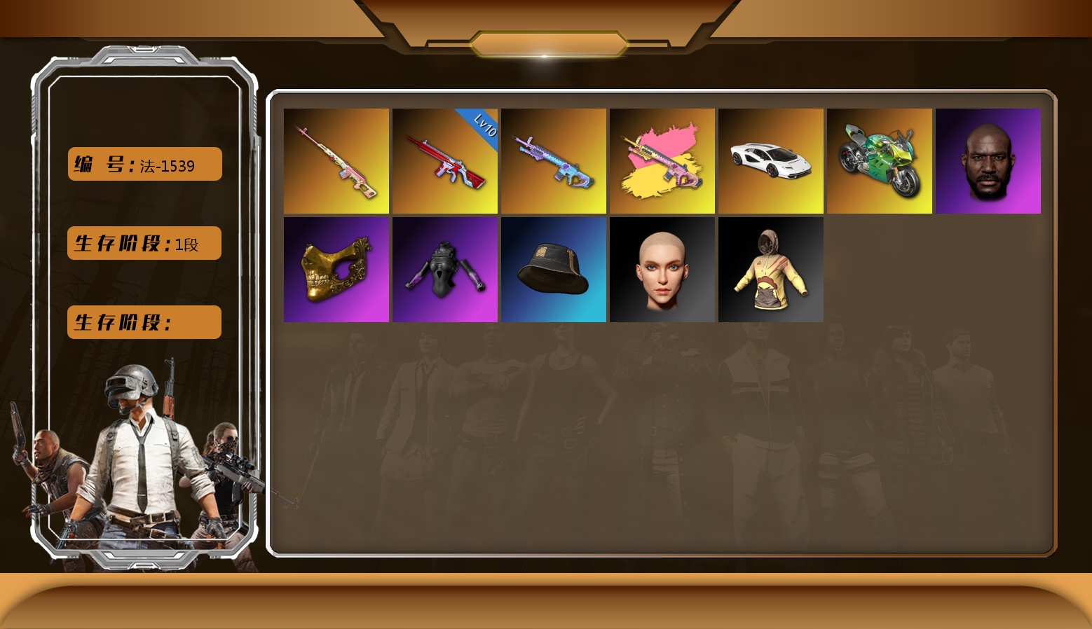 法-1539 233级 信誉等级3 无信号m4 10级 弹珠aug 10级 魔咒mk12 德拉贡 异色魔咒 兰博基尼跑车 兰博基尼suv 杜卡迪绿 烟雾弹粉 黑人 2021pgc黄金面具 红鞋 黑大衣 红围巾 悲喜战神套 拉风龙套 发光手臂