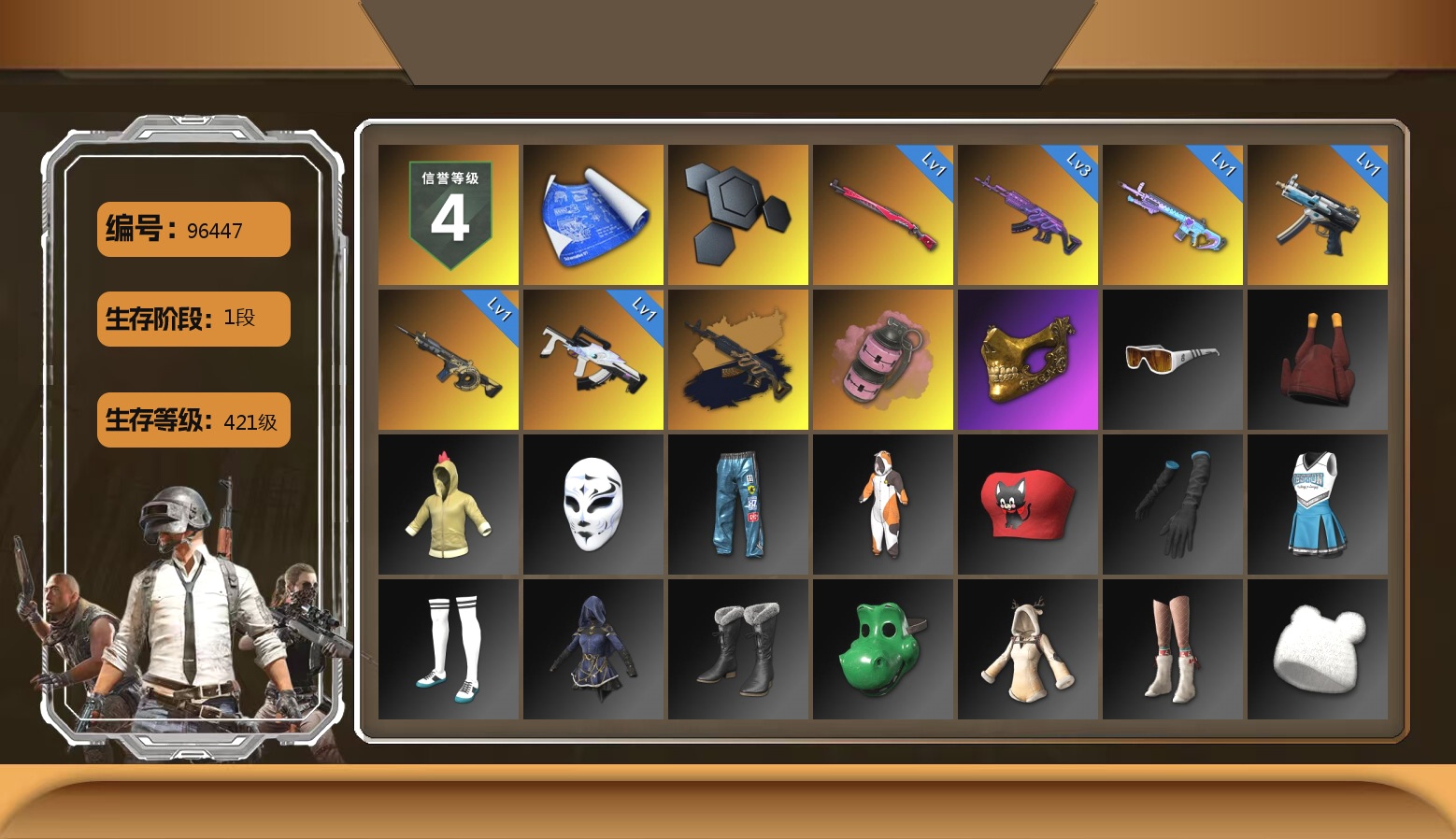 生存4阶段 满级级猪八戒M4 2级塞壬平底锅 1级水麒麟 1级沙悟净MINI 1级弥诺陶洛斯AUG 猪八戒M4(异色) 红面巾 黑大衣 柏林鞋 青色烟雾弹 悲喜 粉战神 小马尾 西游记