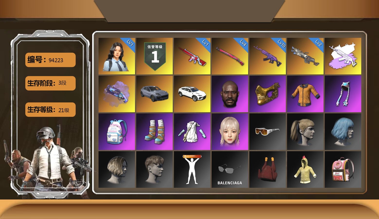 1级瀚娜 10级美杜莎762 4级午夜惊魂98K 2级刻耳柏洛斯M249 1级无信号M4 美杜莎(异色) 紫色魔法迷雾-M79 保时捷卡宴 兰博基尼SUV 黑鬼 金面 黄东 小马尾 小兔学院