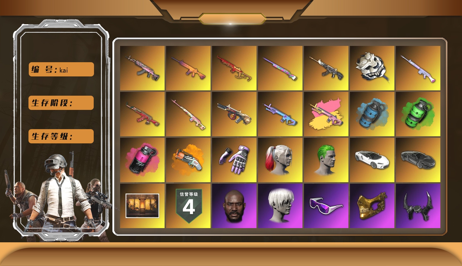 白虎锅 满级 南瓜M4 满级 弥诺陶洛斯AUG 满级 火麒麟 满级 彩虹M24 4 圣诞mini 4 圣诞AK 2 德拉贡 1 恶魔ACE 1 玩偶炮 1 迈凯伦 魔咒Mk12(异色) 魔咒之力Mk12 小叮当 小黄鸭 烟雾弹 悲喜 烟雾枪 西游记 带改名卡 危险玩偶屋 阿狸 小战神 黄东 小兔学院 小黑盒 活动绿东 拉风龙 发光手臂 尼尔 2024女团 武器神龛 粉战神 白战神 女团 金面 滑雪镜 黑鬼 小丑女 小丑男 牛角 9s发型 卡崔娜 小绿头 小马尾 可可 小兔手套