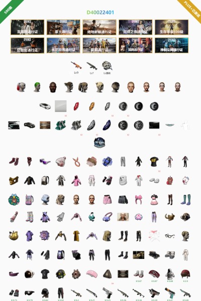 D40022401 南瓜九级 青龙七级 白虎锅三级 丑女 丑男 黑鬼 脏辫 双马尾 丸子头 迈凯伦 阿斯顿马丁 红鞋 红面巾 滑雪套 发带 烟雾枪 烟雾弹 染血运动裤 王者大衣 金面 悲喜套 电磁背包 4阶段400