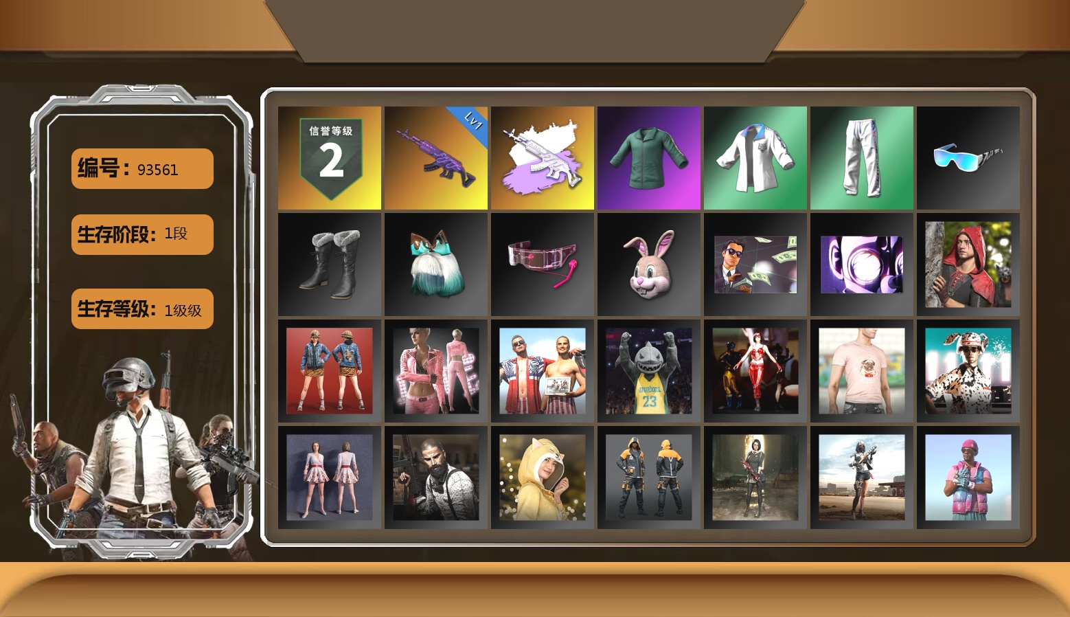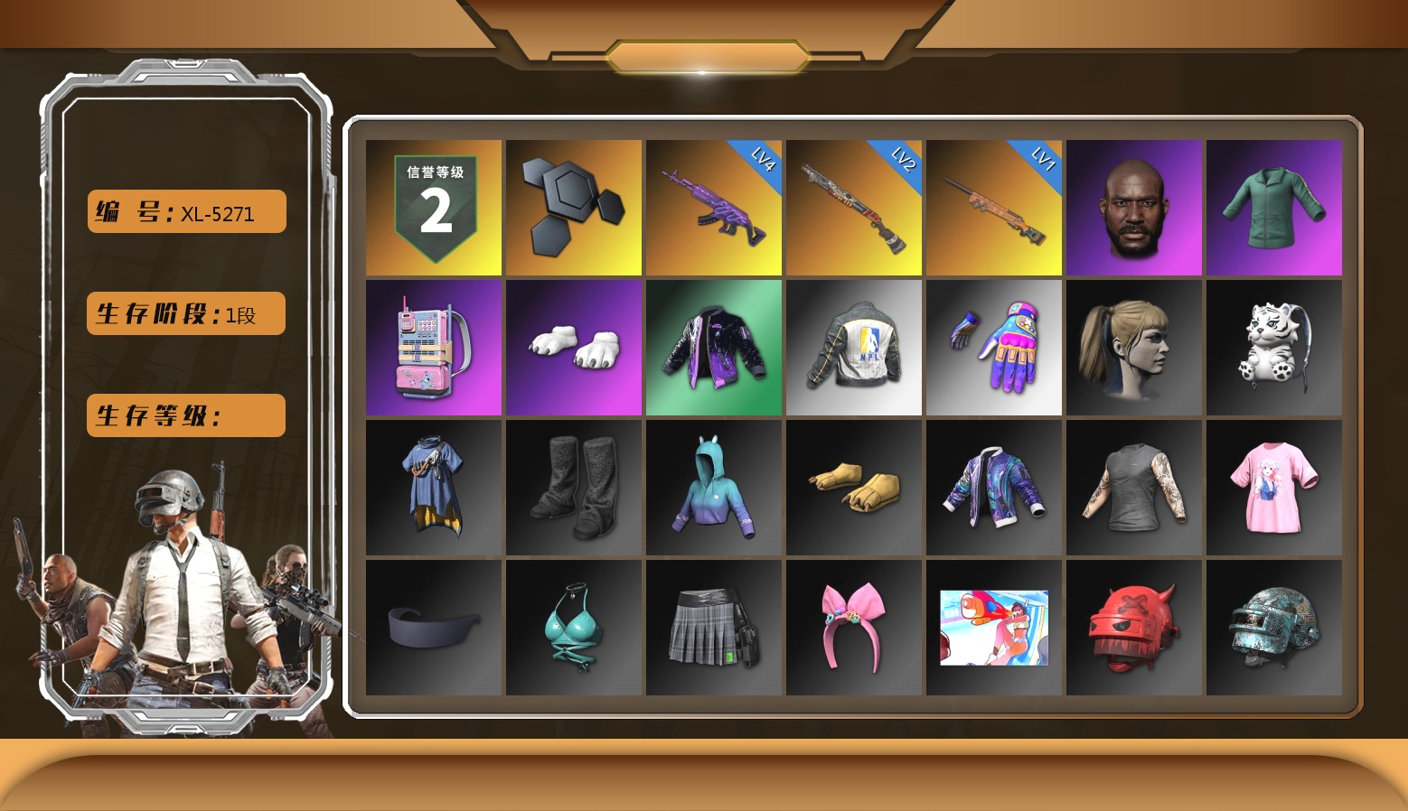 信誉等级三 9级青龙762 5级霓虹AUG 2级朱雀M4 1级齿轮炮 1级圣诞AK 1级猪八戒M4 1级德拉贡 1级午夜惊魂98K 珊瑚色烟雾弹 9s发型 马丁SUV 冬季藏匿处 交易所接待室 1张图纸 猎手金 黑鬼 渔夫帽 滑雪镜 金面 黑绷带 柏林鞋 橙色发带 红面巾 黑大衣 小战神 竞猜裤 粉战神 白熊鞋 发光手臂 滑雪帽 阿狸 尼尔 拉风龙 车漆 小马尾 小绿头 丸子头 脏辫 小兔学院 悲喜 西游记 PGC 2021套装 枪炮洗礼