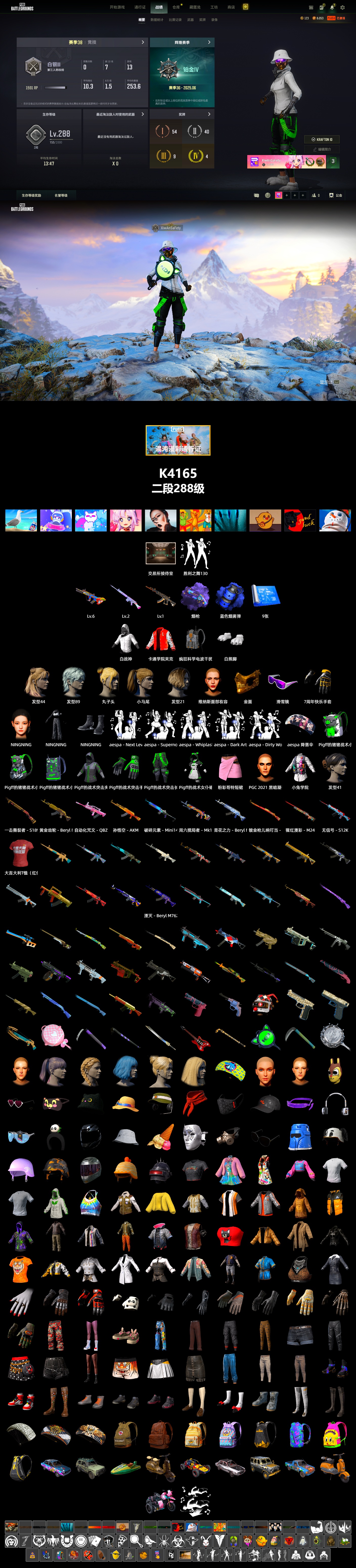 [K4165]2段288级 信誉3 6级爆裂 2级玩偶大炮 1级妖魔 烟弹烟枪 9图纸 白战神 金面 滑雪镜 ningning