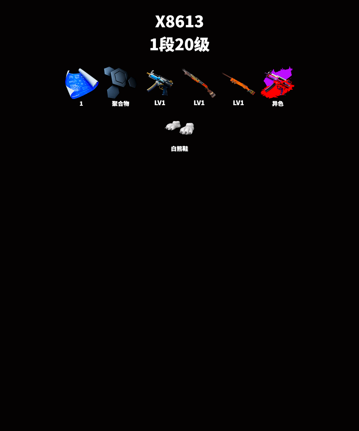 免费版 1张图纸 3000聚合物 1级烈日灼烧-S1897 1级夜曲M24 1级寒蚀MP5K 寒蚀MP5K(异色) 白熊鞋