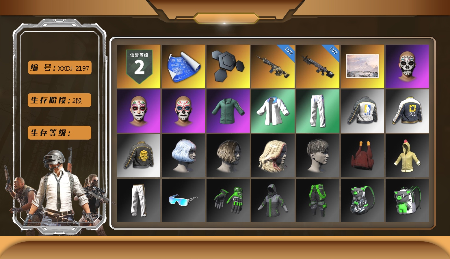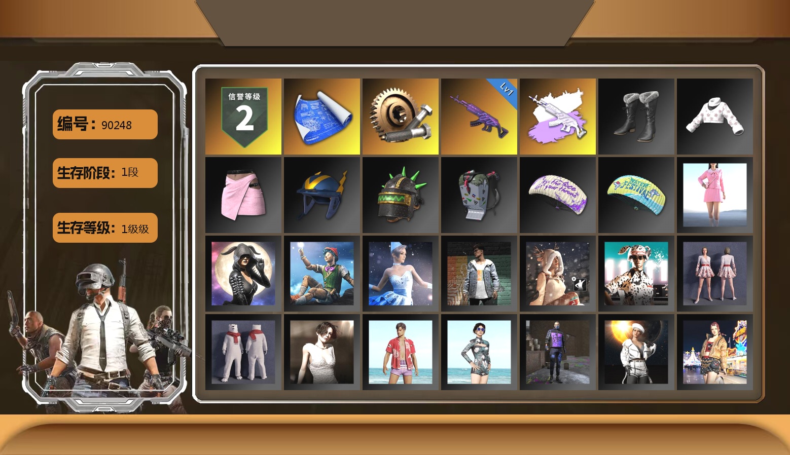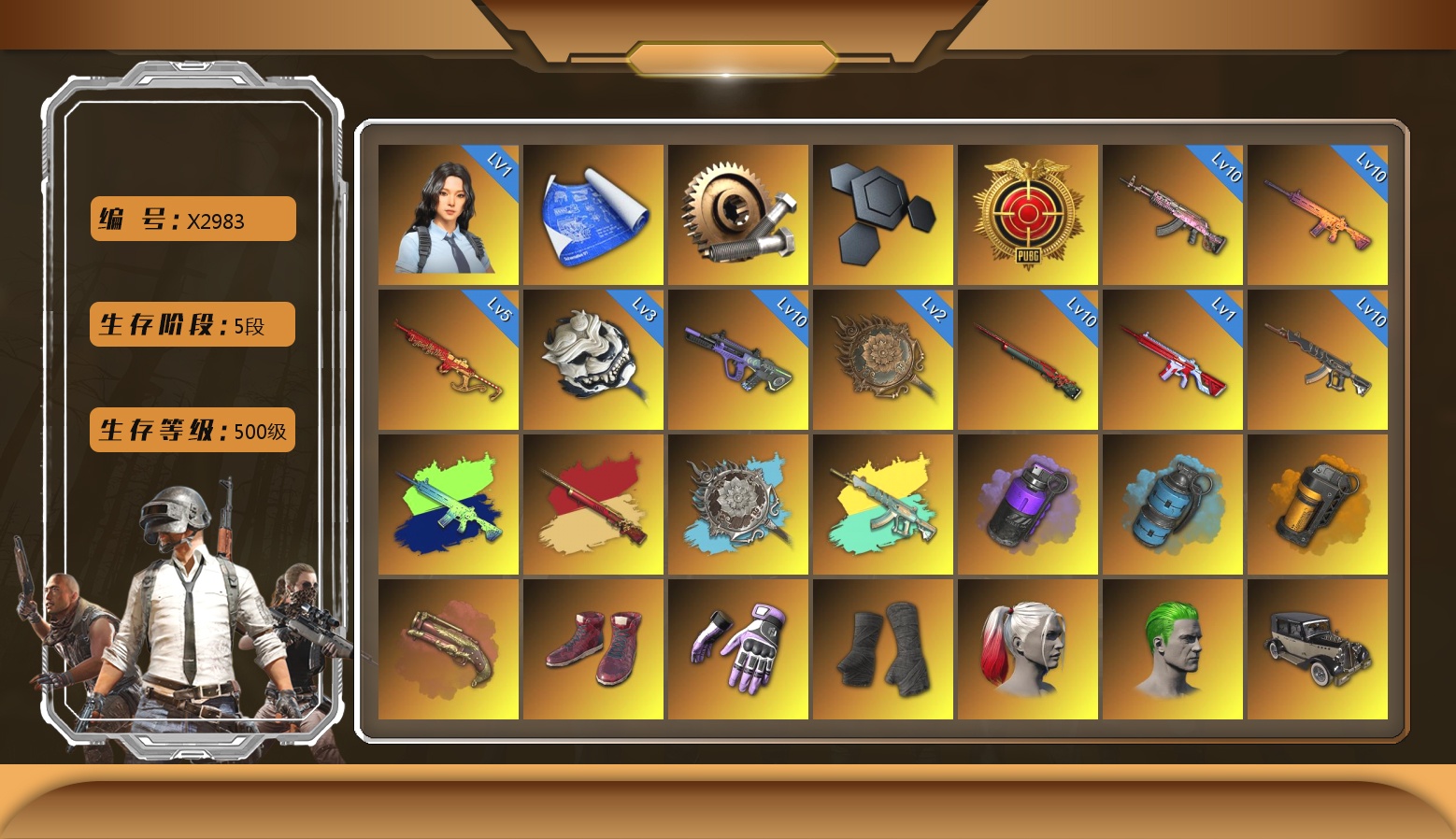 1级瀚娜 3张图纸 蜗牛币 8158聚合物 新加一级s1897原皮加异色 图上未显示!! 10级妖魔之触ACE 10级霓虹AUG 10级火麒麟 10级南瓜M4 10级孙悟空M24 5级圣诞mini 3级白虎锅 2级唐三藏平底锅 1级无信号M4 南瓜M4(异色) 孙悟空M24(异色) 唐三藏(异色) 妖魔之触(异色) 紫色烟雾弹 天蓝色烟雾弹 橘色烟雾弹 深红狂怒之雾-M79 柏林鞋 小黑盒 黑绷带 小丑女 小丑男 帕拉梅拉 保时捷911 保时捷卡宴 布加迪跑车 马丁SUV 杜卡迪极速金 杜卡迪翡翠绿 杜卡迪暮光粉 杜卡迪红 杜卡迪纯净黑 陈列室 交易所接待室 武器神龛 黑鬼 滑雪镜 9s发型 金面 牛角 卡崔娜 丑男妆容 马东锡 内马尔 橙色发带 红面巾 黑大衣 小战神 活动绿东 发光手臂 电磁背包 白熊鞋 粉战神 aespa女团 尼尔 后街车库 车漆 小马尾 小绿头 丸子头 西游记 脏辫 爱的主打歌 青海摇 小兔学院 街头霸王 悲喜 滑雪帽 PGC 2021套装 胜利之舞39 嘉米-加农钉