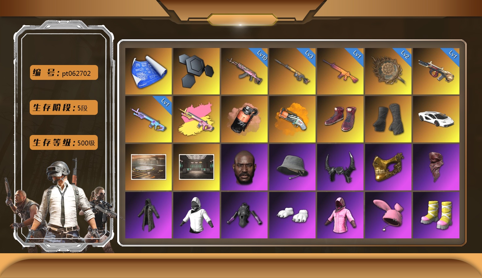 妖魔之触 满级 美杜莎762 9 寒蚀MP5K 1 烈日灼烧 1 保时捷跑车 保时捷911跑车 保时捷SUV 小兔学院 小叮当 危险玩偶屋 粉战神 活动绿东 发光手臂 滑雪镜 金面 西游记 黑鬼 悲喜 小马尾