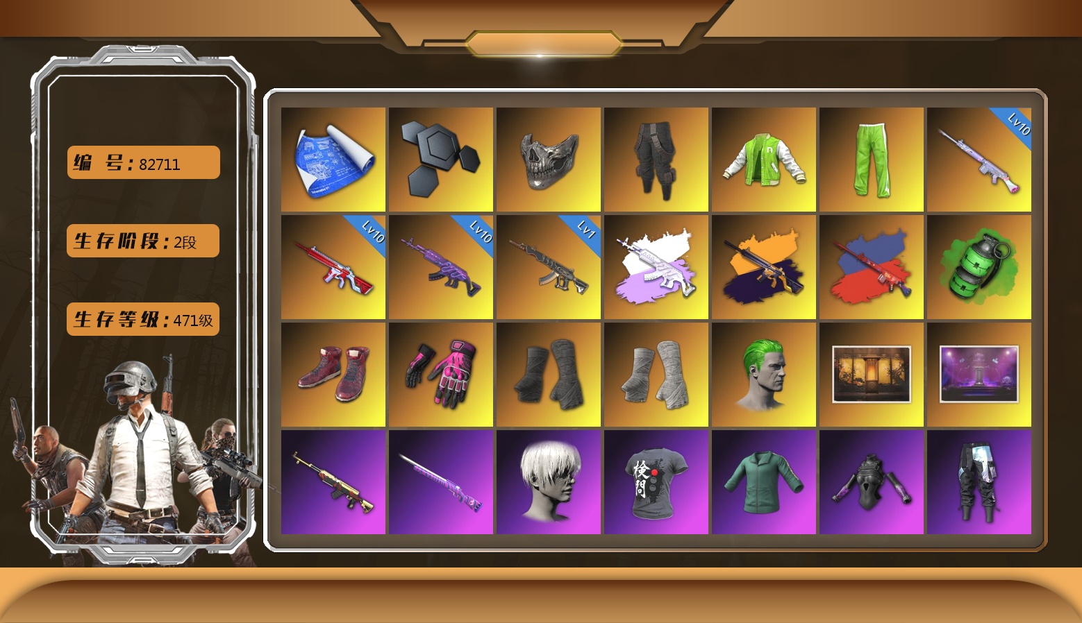 11张图纸 10062聚合物 10级火麒麟 3级齿轮炮 2级唐三藏平底锅 1级南瓜M4 1级弥诺陶洛斯AUG 1级魔咒之力Mk12 魔咒Mk12(异色) 珊瑚色烟雾弹 橙色狂怒之雾-M79 柏林鞋 黑绷带 兰博基尼跑车 陈列室 交易所接待室 黑鬼 渔夫帽 牛角 金面 红面巾 黑大衣 白战神 发光手臂 白熊鞋 粉战神 阿狸 拉风龙 车漆 小马尾 丸子头 西游记 脏辫 青海摇 小兔学院 悲喜 滑雪帽 PGC 2021套装