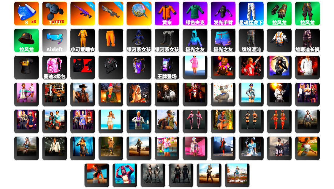 免费版 8张图纸 7370聚合物 1级美杜莎762 1级刻耳柏洛斯M249 1级塞壬平底锅 黄东 活动绿东 发光手臂 拉风龙 西游记