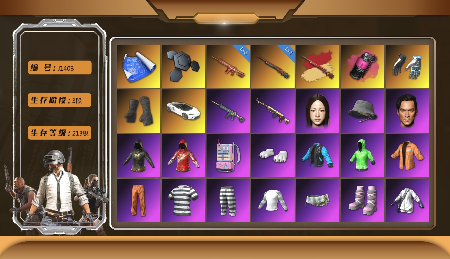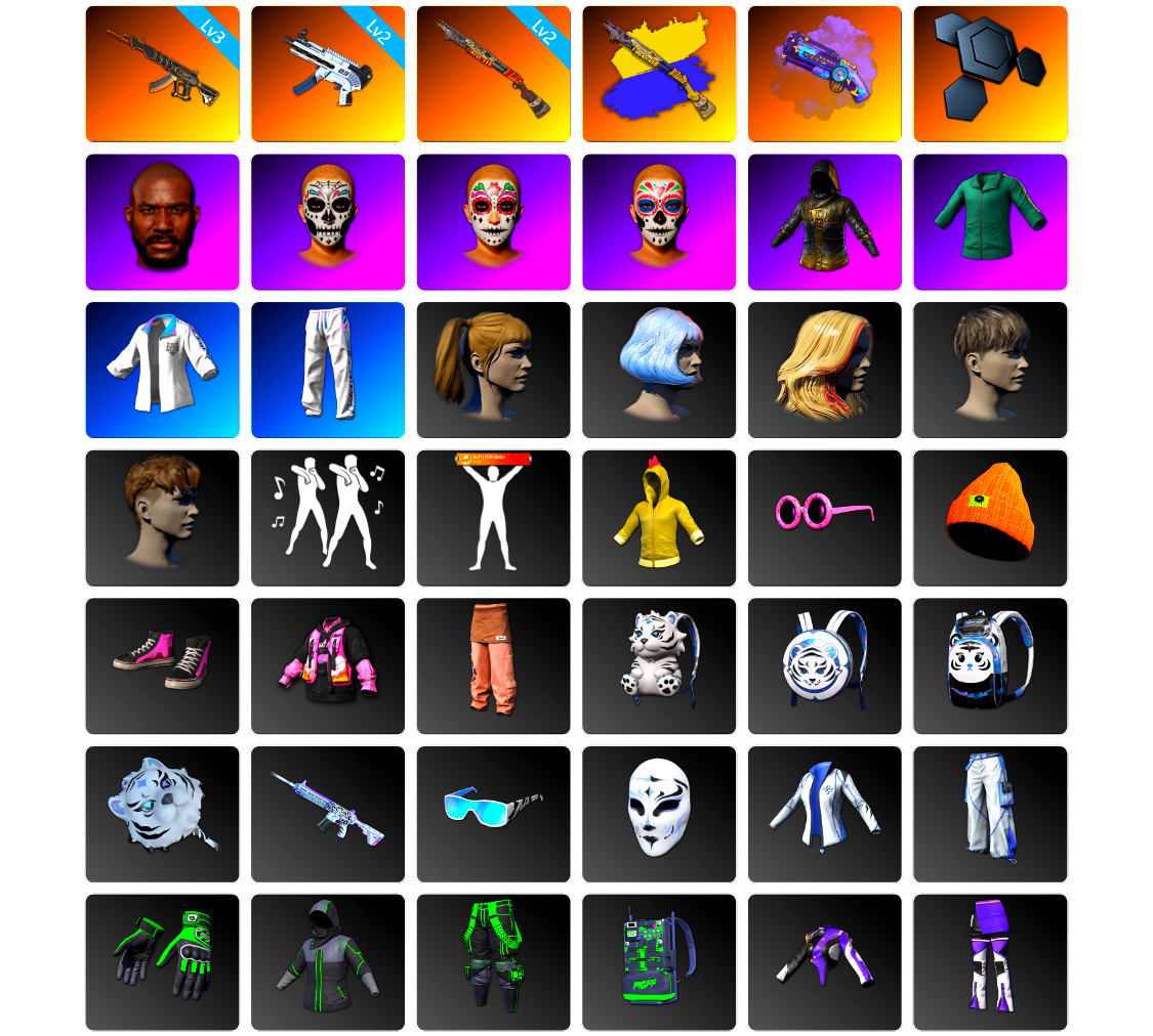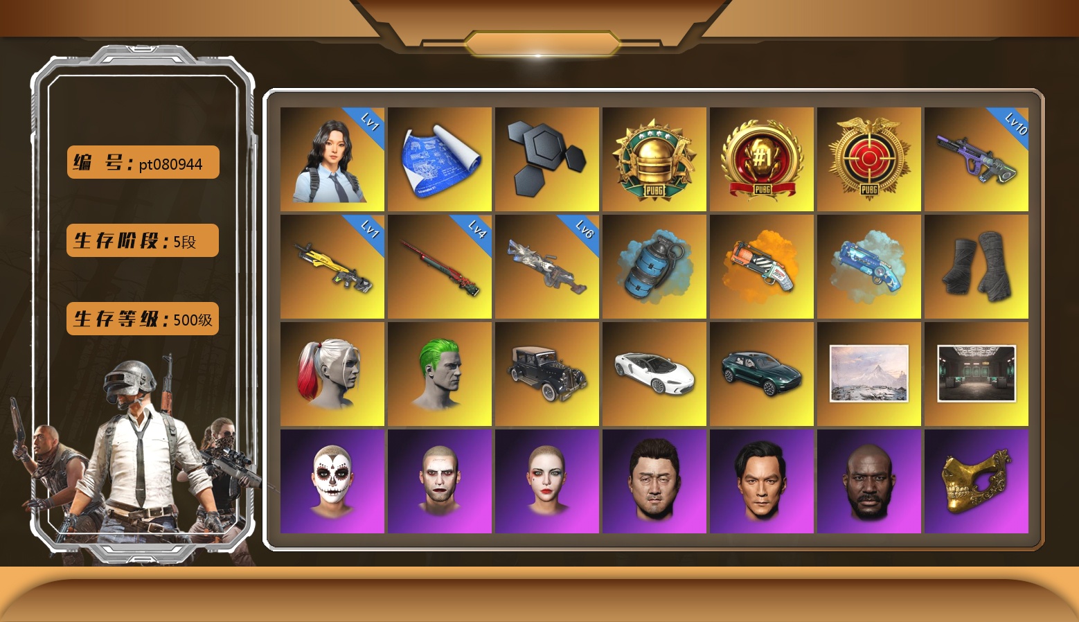 1级瀚娜 张图纸 7374聚合物 10级霓虹AUG 6级刻耳柏洛斯M249 4级孙悟空M24 1级小兔MK12 天蓝色烟雾弹 橙色狂怒之雾-M79 蓝色魔法迷雾-M79 黑绷带 小丑女 小丑男 迈凯伦硅质白版 马丁SUV 冬季藏匿处 交易所接待室 卡崔娜 丑男妆容 马东锡 黑鬼 金面 滑雪镜 橙色发带 小战神 活动绿东 发光手臂 萨芬裤 明月裤 英特尔夹克 粉战神 可可 鸡斯卡夹克 车漆 小马尾 小绿头 丸子头 脏辫 青海摇 小兔学院 悲喜 西游记 绷带AK 滑雪帽 PGC 2021套装 胜利之舞39