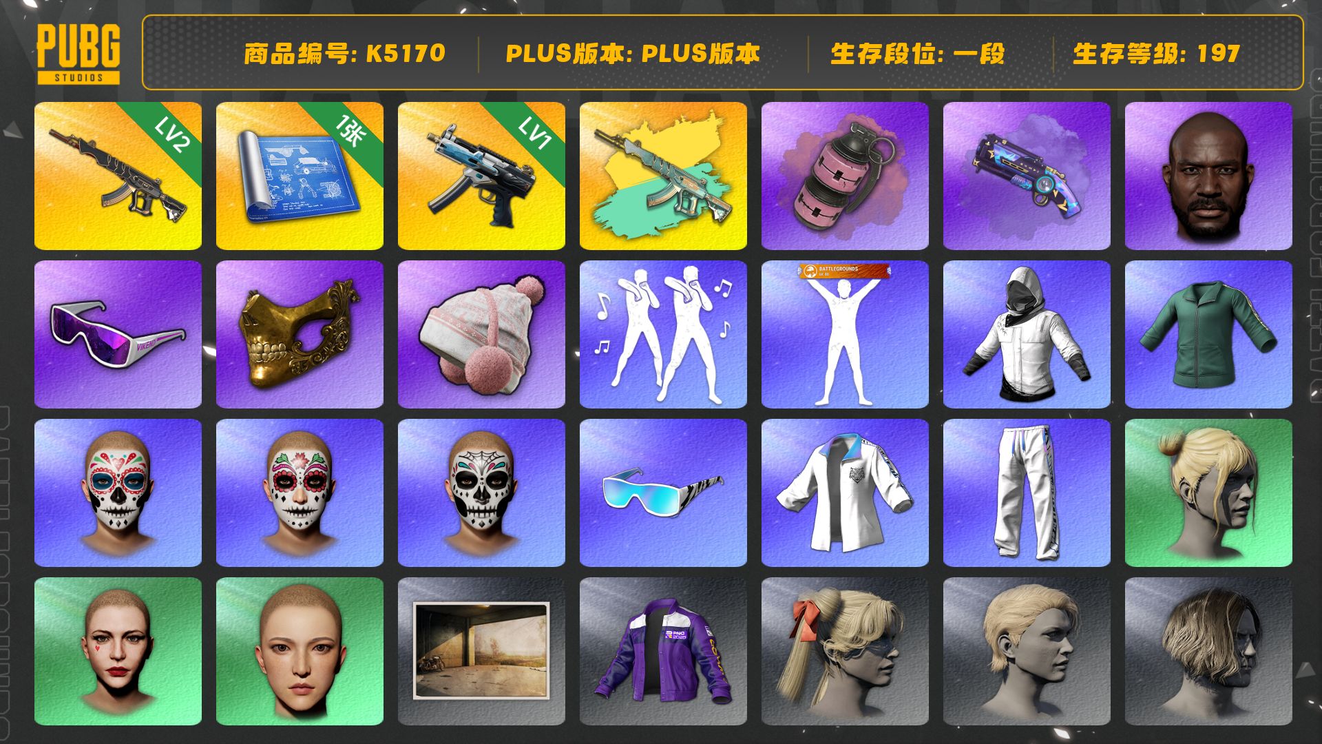 [K5170]1段197级 信誉3 2级妖魔+异色 1级寒蚀 烟枪烟弹 1图纸 白战神 绿东 黑鬼 金面 滑雪镜 丸子头