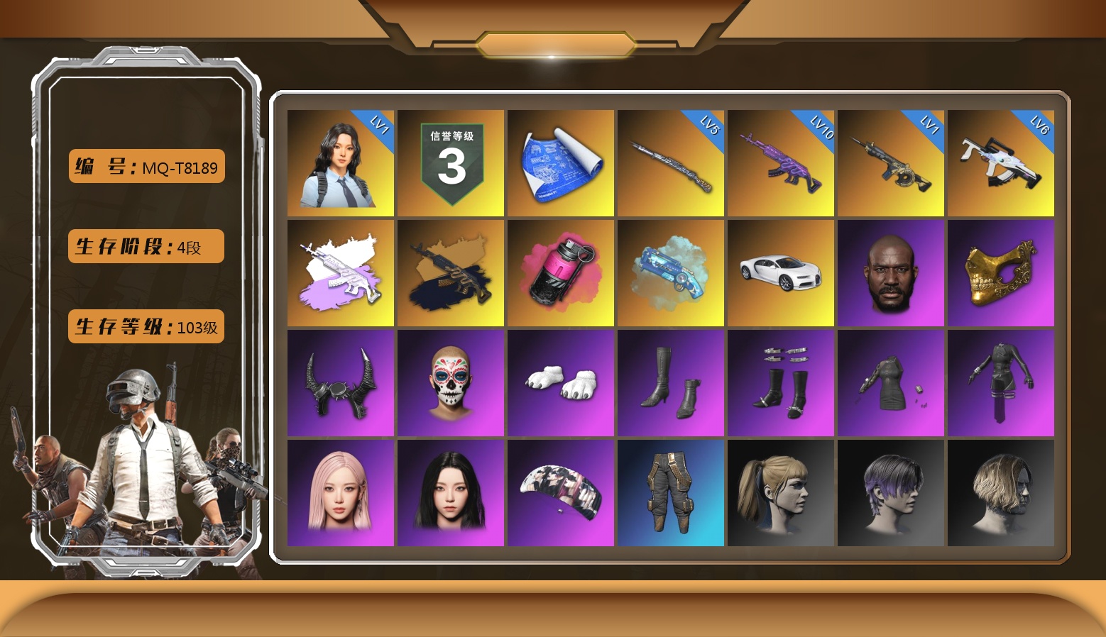 [K4750]3段286级,信誉2,10级无信号M416,4级美杜莎762,2级权志龙AUG,1级刻耳柏洛斯M249,1级无重力MP5K,保时捷卡宴,保时捷,aespa女团,发光手臂,金面,烟枪,烟雾弹,粉色烟雾弹,紫色魔法迷雾 - M79,星魂虎虎生威大礼包,Pigff套装,阿狸大礼包,小绿东,WINTER,小马尾,丸子头