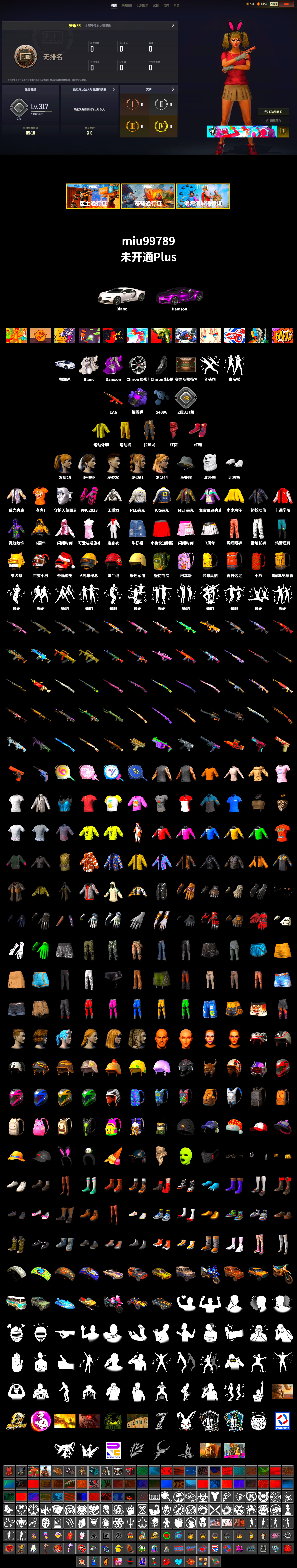 ❤找回包赔❤皮肤:免费版 6级圣诞AK 紫色烟雾弹 柏林鞋 布加迪跑车 交易所接待室 信誉等级一 4896聚合物 渔夫帽 红面巾 黑大衣 白熊鞋 PEL夹克 拉风龙 PJS夹克 北极熊头套 北极熊连身衣 小马尾 萨迪娅的头纱 发型61 青海摇 漫步沙滩凉鞋 复古痕迹夹克 卡通学院夹克 三色猫连身衣 2号长袖运动衫 3号长袖运动衫 猎手猫夹克 猎手猫皮鞋 特工小兔长袖上衣 特工小兔长裤 小青龙脚套 轰炸机夹克 复古重燃 奶牛印花毛皮大衣(棕色) 先驱战队 先驱战队 先驱战队 先驱战队 先驱战队 先驱战队 先驱战队 先驱战队 先驱战队 先驱战队 先驱战队 先驱战队 先驱战队 先驱战队 先驱战队 鸡警短裤 运动外套 (黄色) 绸缎睡裤 光滑丝质睡衣(蓝色) 光滑丝质睡裤(蓝色) 太阳之子电波干扰背包 OGBG 纹身 晚餐幻象纹身 开拓者手套 小兔学院 哥特长靴 疯狂科学 - M416 晚秋-M416 柠檬汁 - M416 爱之小鸡 舞蹈派对! 大猫狂怒 手绘的“举起手来” 把钱交出来 PGC 2022 王牌登场 - Beryl M762 你挡着我晒太阳了! 大爆炸 花呢控 - Beryl M762 绷带AK 暗影斑驳 - AKM 动物之家 - AKM 带刺之美 - AKM 午餐肉的AKM 嘉年华猎手 - ACE32 银河卫士 - SCAR-L 鸡斯卡 - SCAR-L 银河卫士 - M16A4 奥丁的先锋 - Mk47 Mutant Blue Magic Blaster - G36C 水手 - G36C 镀金 - Groza 标准猎手 - Groza 袜中好礼 - K2 PGC 2022 王牌登场 - SLR 六边形战士 - SLR 圣诞猎手 - SKS 礼物环绕 - Mini14 疯狂科学 - Mk12 雪国风光 - Mk14 爬行者之印 - VSS 鎏金王朝 - QBU 海洋哑光(绿色) - QBU 蟒蛇花园 - QBU 炽热沙漠 - VSS 炽热沙漠 - Mk47 Mutant 拼图 - Win94 悠扬情歌 - Kar98k 不许胡闹 - Kar98k PNC 2023 完美角度 - Kar98k 鲜花之力 - AWM 海藻在路上 - M24 食人者 - M24 幽灵之握 - M24 兔女郎的蜜吻 - M24 PCS3 烙印 - M24 王牌 - 莫辛纳甘步枪 无拘来世 - 莫辛纳甘步枪 雪花 - MP5K Poof! - PP-19 Bizon 彩虹之上 - UMP 雪国风光 - 汤姆逊冲锋枪 心跳掠夺者 - MP9 渗透与破坏 - Vector 珍珠王朝 - Micro UZI 圣诞猎手 - M249 雪花 - DP-28 灰色系 - DBS 幽灵之握 - DBS 海藻自己上 - O12 朱雀之灵 - O12 丛林潜行者 - 锯短型霰弹枪 游猎之旅 - S12K 一击撕裂者 - S1897 镀银 - S1897 维寒迪雪上运动 - S686 波涛荡漾 - S686 恶战 - P92 三重条纹 - 沙漠之鹰 淡雅之力 - R1895 指绘 - P1911 行动时刻 - P18C 链锯 朋克战斧 淡雅之力 - 镰刀 山花烂漫 - 十字弩 你的第一锅 - 平底锅 6周年纪念 - 平底锅 7周年快乐 - 平底锅 8th Anniversary - Pan 午餐肉的护手绷带 海洋独行侠手套 暗黑心手套 红丝绒生存者手套 侠盗猫手部装饰 胜利收割者手套 驯鹿嬉戏手套 准备就绪手套 朱莉的手套 熊猫手套 窒息的爱袖套 大麻烦手套 6周年纪念露指手套 霓虹纹饰手套 无重力重型手套 都市耀光戒指 狂野姿态手镯套组 无重力轻型手套 都市耀光墨镜 美人鱼妆容 匕首纹饰加红晕妆容 午餐肉 发型16 发型44 发型39 马戏团之星发型 美人鱼发型 发型42 发型20 法兰绒小熊背包(3级) 6周年纪念背包(3级) 坚持到底背包(3级) 高压背包(2级) 无处可躲背包(2级) 陈旧皮革背包(2级) 通缉者背包(2级) PCS1 背包(1级) 优雅夏日背包(1级) 正义之诗背包 (1级) 光彩夺目皮革背包(1级) 强健的龙骨背包(1级) 太阳之子 - 头盔(2级) 6周年纪念 - 头盔(3级) 米色军用 - 头盔(2级) 节日法兰绒 - 头盔(2级) 鸡斯卡小鸡 - 头盔(2级) 小兔快递 - 头盔(2级) 狂乱深渊 - 头盔(1级) 百变小丑 - 头盔(1级) 没错我有罪头套 7周年快乐甜筒帽 缤纷圣诞帽 准备就绪鸭舌帽 小兔快递制服鸭舌帽 亮片鸭舌帽配耳机(紫水晶色) 危险勿近针织帽 熊猫发箍 黑兔发带 太阳花瓣草帽 彩虹漫游者遮阳帽配护目镜 金色守护者耳机配鸭舌帽 准备就绪口罩 守护天使面具 烤鸡节围巾 狂野姿态上衣 月光游牧者上衣 炫酷反光夹克 高档夹克 绗缝夹克 蟒蛇吐信夹克 准备就绪夹克 破裂棱镜夹克 霓虹纹饰连帽卫衣 6周年纪念夹克 我的闪耀时刻连帽夹克 蟒蛇吐信T恤 密使夹克 烤鸡节夹克 夜伴花开夹克 符文锻造者夹克 “她的银河”T恤 龙年大吉连帽卫衣 小小鸡仔外套 侠盗猫夹克 可爱喵喵旗袍 小兔快递制服上衣 暗影特战背心 白色朴素T恤 成功人士毛衣 贾米拉毛衣 T恤配项链(红色) 冰雪公主毛衣 萌虎下山运动衫 传说联盟篮球T恤 7周年快乐夹克 衬衫 (灰色) 狂徒衬衫 小小鸡仔T恤 守墓者西服 T 恤 (白色) T 恤 (灰色) Horse King的老虎T恤 无重力重型夹克 Guardian of the Groove Shirt 都市耀光夹克 月光游牧者夹克 运动裤 (黄色) 准备就绪长裤 午餐肉的长裤 锦鲤丝袜配高跟鞋 狂徒长裤 邓肯的运动裤 邓肯的长裤 咖啡王裙裤 雪地长裤(白色) 战斗裤 (棕色) 战斗裤 (卡其色) 喇叭裤(深靛色) 短裤配紧身裤(黑色) 牛仔裤 (棕褐色) 霓虹纹饰短裤 侠盗猫短裤 贾米拉短裤 小小鸡仔短裤 巨星短裤 7周年快乐短裙 6周年纪念短裤 太阳花瓣牛仔短裤 朱莉的潜行者短裤 沙滩短裤 学院派百褶裙 我的闪耀时刻短裙 小兔快递制服短裙 仿旧牛仔裙 狂野姿态褪色牛仔裤 月光游牧者短裙 都市耀光宽松长裤 Horse King的老虎短裤 守墓者皮鞋 花式皮鞋(白色) 小兔快递配送员运动鞋 沙滩兄弟运动鞋 春之漫游皮鞋 奶牛印花短靴(黑色) 先驱战队战靴 邓肯的靴子 雪人短靴 维寒迪雪上运动短靴 准备就绪运动鞋 高帮运动鞋 复古重燃运动鞋 沙滩宝贝凉鞋 暖冬短靴 霓虹纹饰运动鞋 深红女郎的长靴 可爱喵喵短靴 水纹布鞋(黑色) 6周年纪念短靴 PCS3 逐日者长靴 足球靴
