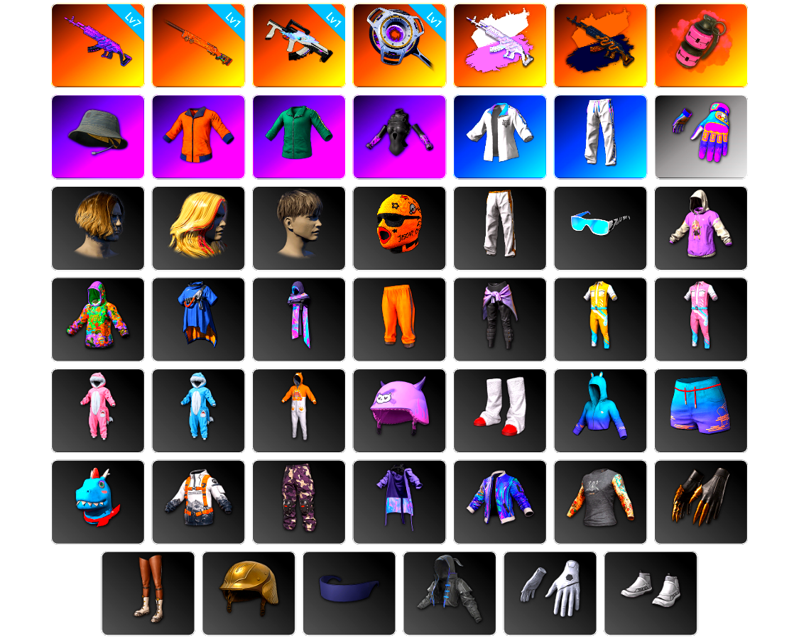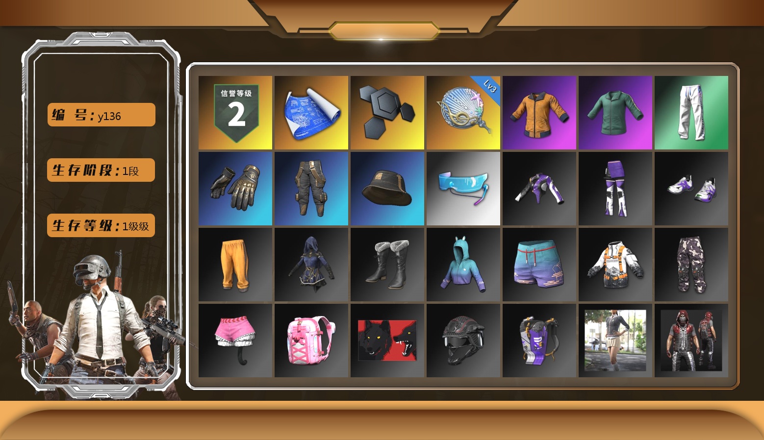 10级异色青龙 10级异色南瓜 9级火麒麟 6级德拉贡 1级ACE32 1级爆裂AUG 2级白虎锅 NewJeans女团MINJI套装 杜卡迪 兰博基尼 彩色烟雾弹枪 粉头 丸子头 小双马尾 黑鬼 金面 渔夫帽 滑雪镜 悲喜粉战神 红鞋 红面巾 北极熊套装 发光手臂 猪八戒套装 KFC套装