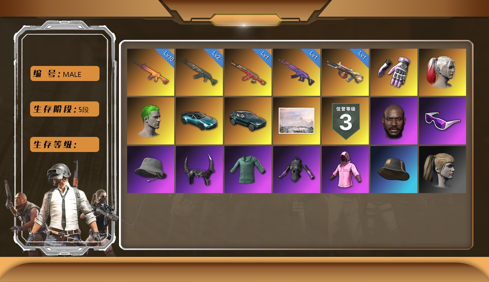 5阶段 信誉3 迈凯伦 兰博 马丁 杜卡迪 3满 8成长 柏林面具 柏林裤 小丑男 黑鬼 卡崔娜 渔夫帽 牛角 金面 滑雪镜 发光手臂 活动绿东 电磁背包 白战神 小战神 小叮当 悲喜 拉风龙 小兔学院 小黄鸭 布朗熊 NANV 小兔手套 西游记 危险玩偶屋 粉战神 黄东 尼尔 阿狸 小绿头 小马尾 陈列室 兰博大厅 冬季藏匿处