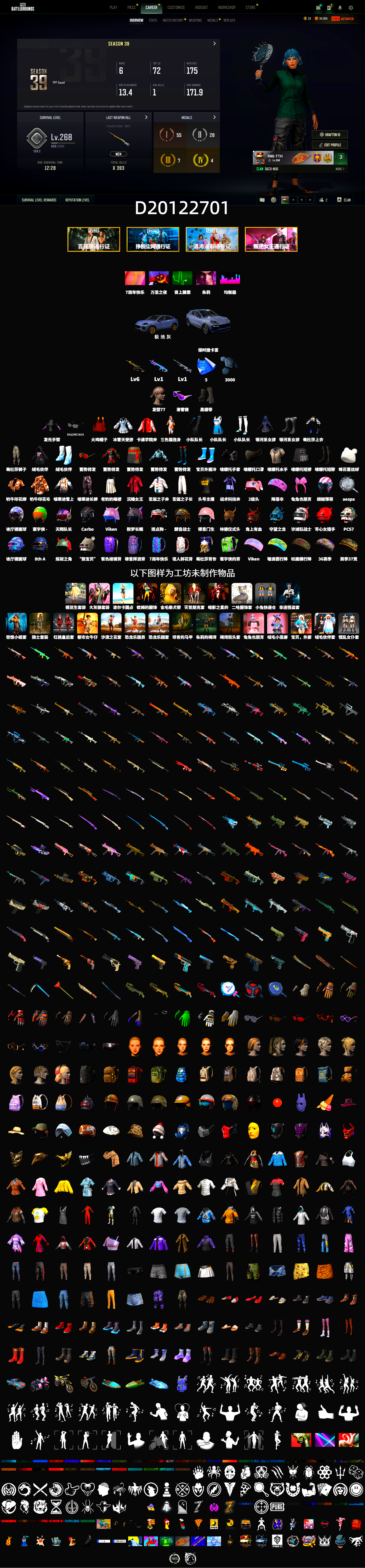 D20122701 6级猪八戒M4 1级魔咒之力Mk12 1级幽影残魂AWM 黑绷带 保时捷卡宴 滑雪镜 发光手臂 小兔学院
