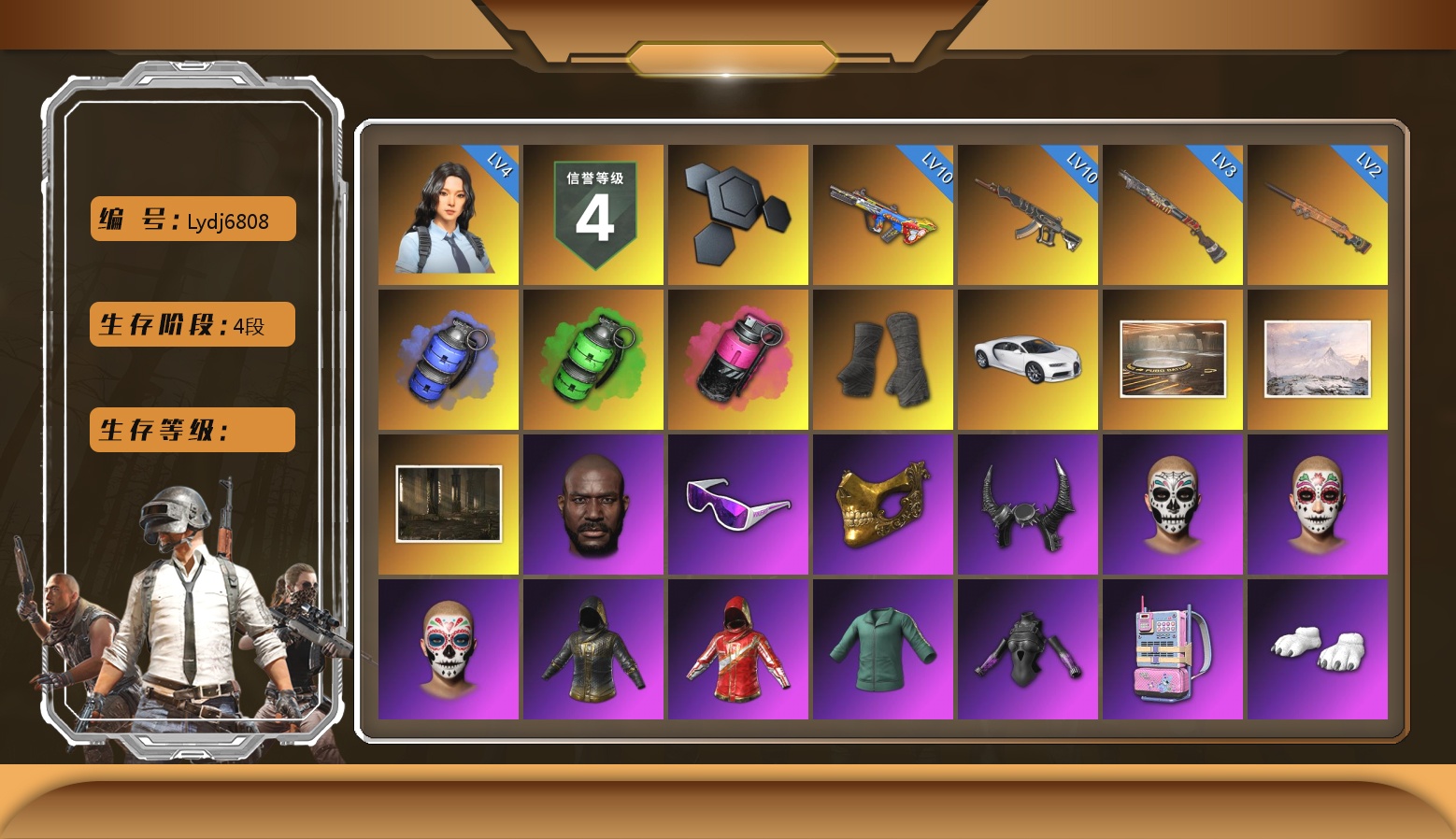 ❤找回包赔❤皮肤:10级爆裂AUG 10级妖魔之触ACE 4级瀚娜 3级烈日灼烧-S1897 2级夜曲M24 蓝色烟雾弹 翡翠色烟雾弹 品红色烟雾弹 黑绷带 布加迪跑车 陈列室 冬季藏匿处 艾伦格重制 信誉等级四 3595聚合物 黑鬼 滑雪镜 金面 牛角 亡灵律动妆容 万寿菊狂欢妆容 午夜祭典妆容 GPT夹克 17战队夹克 活动绿东 发光手臂 电磁背包 白熊鞋 马赛克露脐装 PML夹克 粉战神 aespa女团 宁艺卓 星魂猛虎下山运动夹克 星魂猛虎下山运动裤 拉风龙 PJS夹克 杂技熊头套 杂技熊玩偶服 北极熊头套 北极熊连身衣 杂技熊脚套 “魔力甜心萨莉” 两栖装甲车 Number 小马尾 发型43 丸子头 发型21 萨迪娅的头纱 发型56 发型61 发型41 脏辫 发型24 类星之王 青海摇 人型看板 火鸡帽子 非鸡连帽卫衣 精致长裤 唯一甜甜圈背包(3级) 果酱甜甜圈 - 头盔(3级) 暴躁花生墨镜 釉彩甜甜圈面具 暴躁花生针织帽 甜甜圈遮阳帽 坏兔子面具 釉彩甜甜圈衬衫 釉彩甜甜圈手套 甜甜圈手套 釉彩甜甜圈运动鞋 暴躁花生运动鞋 甜甜圈运动鞋 甜甜圈短裤 暴躁花生连帽卫衣 暴躁花生长裤 釉彩甜甜圈运动裤 星魂猛虎下山滑雪镜 朱芳芳手套 朱芳芳夹克 朱芳芳长裤 PNC 2025 战术科技上衣 PNC 2025 战术科技长裤 PNC 2025 战术科技运动鞋 日光下澈凉鞋 日光下澈丛林短裤 日光下澈热带短裤 丝滑夏日短裤(白色) 丝滑夏日短裤(橄榄绿) 银色美人飞行员夹克 卡通学院夹克 零度机能风 加油!连帽卫衣 小可爱睡衣 末世装束 无重力披风 斑斓危机 闪亮运动裤 鳄鱼大军泳裤 战术科技裤 三色猫连身衣 1号长袖运动衫 2号长袖运动衫 3号长袖运动衫 猎手猫夹克 猎手猫短裙 猎手猫皮鞋 特工小兔长裤 钟楼魔女 小队队长 小队队长 小队队长 银河系女孩 银河系女孩 棉花糖帽子 棉花糖手套 棉花糖马甲 棉花糖T恤 棉花糖短裤 棉花糖鞋 极光之友 蓄势待发 蓄势待发 蓄势待发 蓄势待发 打工小兔长靴 恐龙乐园 恐龙乐园 柴犬帮 柴犬帮 柴犬帮 柴犬帮 宝贝外面冷 宝贝外面冷 宝贝外面冷 宝贝外面冷 维娜托手套 维娜托口罩 维娜托水手 维娜托短裙 维娜托短靴 怨恨小姐 怨恨小姐 怨恨小姐 怨恨小姐 佣兵队制服 欢快麋鹿 欢快麋鹿 磨损牛仔裤 棉花蕾丝绒 棉花蕾丝连衣裙 绒汪汪 紫喵喵手套 紫喵喵卫衣 紫喵喵长裤 紫喵喵短靴 奶牛印花绑结式上衣(黑色) 奶牛印花毛皮大衣(黑色) 维寒迪雪上运动夹克 维寒迪长裤 先驱战队 先驱战队 先驱战队 先驱战队 先驱战队 先驱战队 先驱战队 先驱战队 先驱战队 先驱战队 先驱战队 先驱战队 先驱战队 先驱战队 先驱战队 鸡警 鸡警短裤 沉睡女王 绸缎睡裤 头号主播 战术科技夹克 Twitch Rivals 复古飞行员夹克 太阳之子电波干扰背包 OGBG 纹身 晚餐幻象纹身 小恶魔纹身 金墨点染 金墨点染 金墨点染 群雄逐鹿 金墨点染 金墨点染 金墨点染 群雄逐鹿 群雄逐鹿 金墨点染 2级包 开拓者手套 开拓者上衣 开拓者长裤 开拓者夹克 强袭者短裤 强袭者短鞋 强袭者上衣 强袭者夹克 开拓者短鞋 萨莉的T恤 魔力甜心萨莉的礼服(粉红色) 萨莉的皮鞋 萨莉的礼服 萨莉的长靴 萨莉的礼服 萨莉的皮鞋 萨莉2级头 萨莉2级包 小兔航天局 小兔航天局 小兔航天局 小兔航天局 小兔航天局 小兔航天局 小兔航天局 小兔航天局 小兔航天局 小兔航天局 探月者 探月者 探月者 小兔学院 兔兔也朋克面罩 绒毛小恶魔夹克 绒毛小恶魔短裙 绒毛小恶魔圆头鞋 兔兔也朋克发箍 兔兔也朋克洋裙 兔兔也朋克腿套 哥特上衣 哥特短裙 哥特长靴 发型60 发型59 神秘女巫 神秘女巫 悲喜 aespa - 平底锅 aespa 背包(2级) 晚秋-M416 柠檬汁 - M416 暴脾气 - M416 无慈悲 - M416 PGC 2021 群雄逐鹿 - M416 地狱火 - M416 雪国风光 - M416 蟒蛇花园 - M416 邓肯的M416 PNC 2022 连战连捷 - M416 彩糖蛋糕 - M416 糖霜乐园 - M416 PGC 2023 皇冠宝石 - Beryl M762 宁艺卓 守护兽的凝视 爱之小鸡 舞蹈派对! 维京先遣队 万圣节大奖 月下狼嚎 战场恶犬 天际之眼 让子弹飞 亲爱的... 复古兜风 PUBG x NewJeans 今夜,将一切带走 猛虎 朱莉 流水线 你挡着我晒太阳了! 兔兔吹泡泡 PGC 2022 王牌登场 - Beryl M762 双龙出海 PGC 2021 群雄逐鹿 - Beryl M762 游戏结束 热恋中的 起起伏伏,眉头紧蹙 双狼成行 月球漫步者 魔女之力 - Beryl M762 梅花同花 - Beryl M762 橘子灰碳 - Beryl M762 镀金 - Beryl M762 毒性 - Beryl M762 凯尔特结 - Beryl M762 PCS2 金色成就 - Beryl M762 镀银 - Beryl M762 鎏金王朝 - Beryl M762 山花烂漫 - Beryl M762 猎食纪元 - Beryl M762 花呢控 - Beryl M762 魔力甜心萨莉的挚友 - AKM 绷带AK 精巧机械 - AKM 带刺之美 - AKM 钞能力 - AKM 金色落叶 - AKM 焰弹召唤者 - AKM 渗透与破坏 - AKM 午餐肉的AKM 奥丁的先锋 - AKM 蟒蛇花园 - AKM 灵魂枷锁 - AKM 鲜花之力 - AKM 竞速之道 - AKM 大理石宝藏 - AKM 暗影斑驳 - AKM 标准猎手 - AKM 多彩科技猫 - AUG 远程地图 - AUG 嗜血者 - AUG 宝贝外面冷 - ACE32 Starstruck - ACE32 PNC 2023 完美角度 - ACE32 嘉年华猎手 - ACE32 大理石宝藏 - ACE32 糖果碗 - ACE32 霓虹之星 - SCAR-L G-DRAGON - SCAR-L 蔚蓝挑战者 - SCAR-L 斯科尔粉碎者 - SCAR-L 补丁 - SCAR-L 假日精神 - SCAR-L 粗糙 (橙色) - SCAR-L 火山灰烬 - SCAR-L 鸡斯卡 - SCAR-L 银河卫士 - SCAR-L 疯狂收割者 - SCAR-L 魔力宝贝 - M16A4 华夫饼 - M16A4 冷血 - M16A4 恶战 - M16A4 银河卫士 - M16A4 游猎之旅 - M16A4 双色 - M16A4 皇家舰队 - M16A4 圆点猎手 - M16A4 甜蜜外衣 - M16A4 分形几何 - QBZ 绿地迷彩 - QBZ 鎏