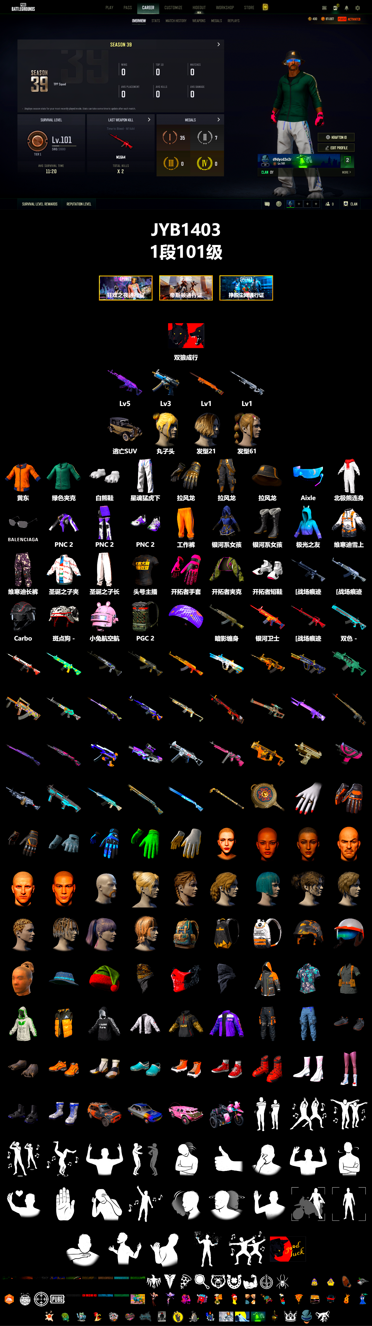 编号JYB1403皮肤:5级美杜莎762 3级寒蚀MP5K 1级夜曲M24 1级幽影残魂AWM 逃亡SUV 黄东 活动绿东 白熊鞋 星魂猛虎下山运动裤 拉风龙 Aixleft 北极熊连身衣 丸子头 发型21 发型61 巴黎世家透明方形墨镜 PNC 2025 战术科技上衣 PNC 2025 战术科技长裤 PNC 2025 战术科技运动鞋 工作裤 银河系女孩 银河系女孩 极光之友 维寒迪雪上运动夹克 维寒迪长裤 圣诞之子夹克 圣诞之子长裤 头号主播 开拓者手套 开拓者夹克 开拓者短鞋 [战场痕迹] M416 [战场痕迹] AKM 双狼成行 Carbon Fiber Commando - Helmet (Level 2) 斑点狗 - 头盔(2级) 小兔航空航天局 - 头盔(3级) PGC 2024 背包(3级) PNC 2025 全力出击降落伞 晚秋-M416 柠檬汁 - M416 猎食纪元 - Beryl M762 PCS2 金色成就 - Beryl M762 绷带AK [战场痕迹] 孙悟空 - AKM 西游记 [战场痕迹] 进军亚特兰蒂斯 - AUG 银河卫士 - SCAR-L [战场痕迹] 猩红时刻 - M16A4 双色 - Mk47 Mutant 丛林潜行者 - G36C 山花烂漫 - Groza 无慈悲 - K2 唐三藏 - SLR [战场痕迹] PNC 2025 战术科技 - SKS 甜蜜外衣 - Mini14 红桃同花 - Mk12 花呢控 - VSS 璀璨星光 - QBU 致命快递 - 德拉贡诺夫 PNC 2023 完美角度 - Kar98k [战场痕迹] PNC 2025 战术科技 - MP5K 竞速之道 - P90 破冰者 - UMP 水手 - 汤姆逊冲锋枪 精致赫尔墨斯 - Micro UZI 水手 - Micro UZI 暗影之策 - M249 双色 - DBS 波涛荡漾 - S12K 毒性 - S1897 波涛荡漾 - S686 PUBG信条钢管 妙尔尼尔 - 平底锅 维纳斯俱乐部手部装饰 维寒迪雪上运动手套 小兔快递配送员手套 露指操作员手套 蓝色闪电手套 金底耐磨手套 维纳斯面部妆容 女性面容20 狂人·马尔霍特拉 午餐肉 男性面容9 男性面容18 马蹄铁型小胡子 发型66 发型18 发型23 发型58 发型30 发型19 发型46 发型63 发型88 发型75 米拉玛地图背包(2级) 勇往直前背包(1级) 维寒迪雪上运动背包(1级) PUBG信条 - 头盔(2级) 维寒迪雪上运动 - 头盔(1级) 丝袜头套 夏日渔夫帽(蓝绿色) 小精灵睡帽 PCS2 隐形生存者面巾 猩红猎手面具 沙暴伪装丝巾 小兔快递配送员夹克 花衬衫(蓝绿色) 军用夹克 生存练习生连帽卫衣 PUBG信条马甲 雪地迷彩夹克 PGC 2025 Windbreaker PNC 2025 夹克 小兔快递配送员长裤 雪地工装裤 小兔快递配送员运动鞋 二哈脚套 午餐肉的运动鞋 PCS2 极速转移运动鞋 沙滩鞋(蓝绿色) 维寒迪雪上运动短靴 斯科尔运动鞋 海洋独行侠短靴 可爱喵喵短靴 维纳斯俱乐部丝袜配长靴 PGC 2022 斑斓危机便鞋 雪地迷彩短靴 “公路战士” 恣马 “彩虹四溢” 达西亚轿车 “魔力甜心萨莉” 两栖装甲车 “怪盗小兔” 摩托车 胜利之舞118 胜利之舞56 胜利之舞134 Victory Dance - 8th Anniversary 胜利之舞136 #1 特殊问候 嫉妒 棒棒哒 挑衅 投降 不耐烦 谢谢 停止! 抖缩 庆祝 同意 反对 你好 大厅姿势2 大厅姿势1 你完蛋了 耸肩 过来 雪舞登场 胜利之舞163 祝你好运 生存等级:1段