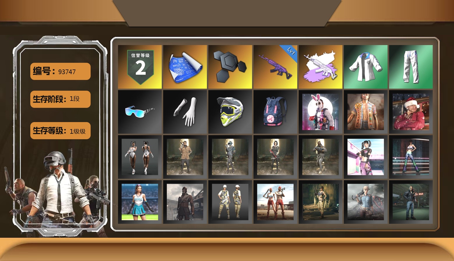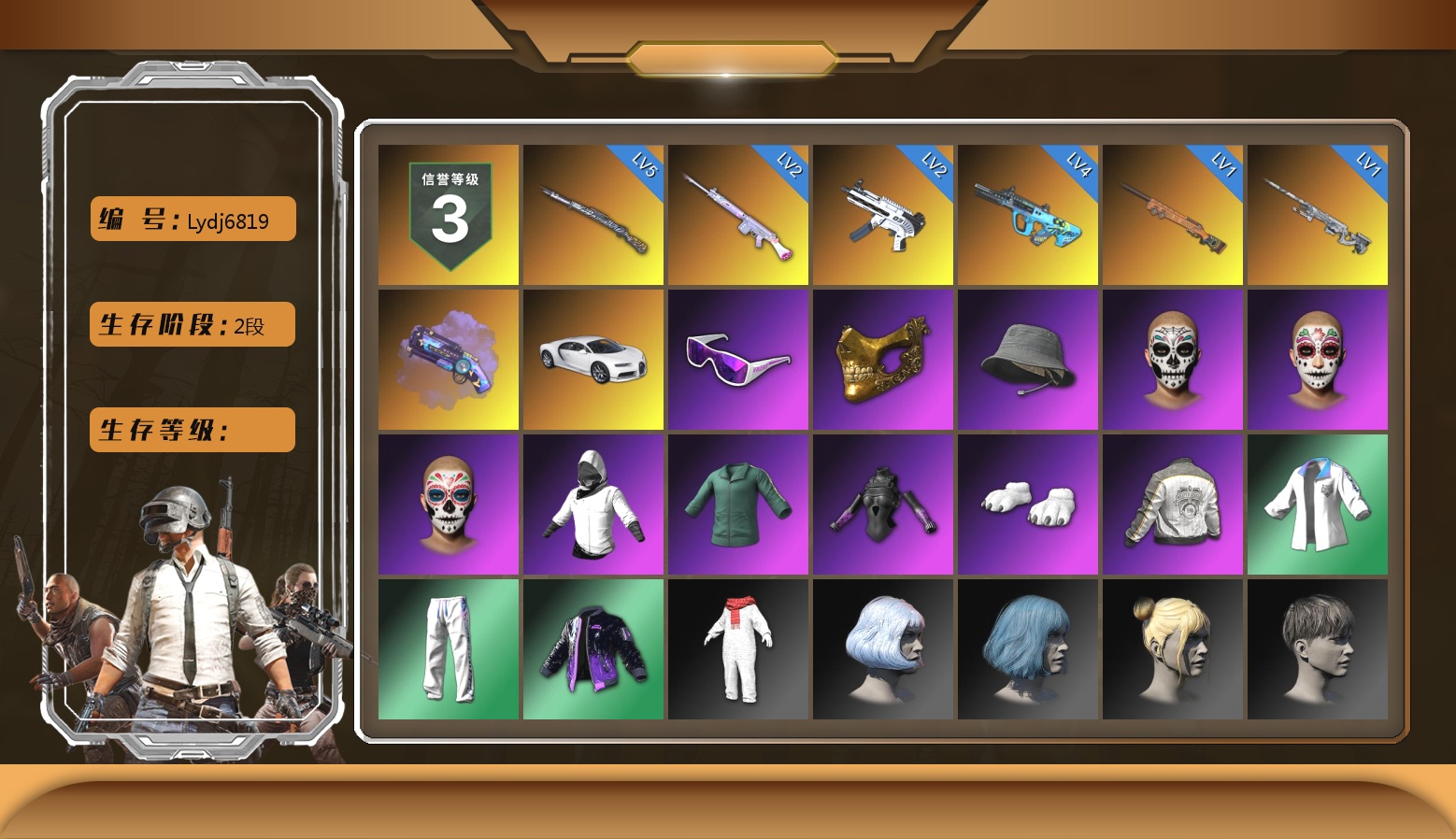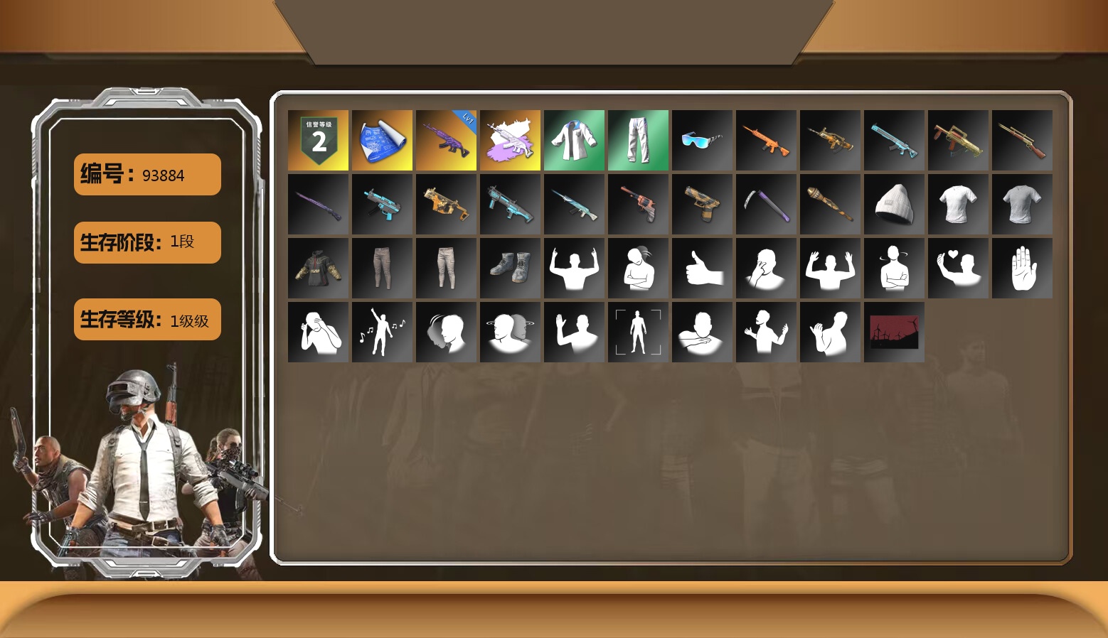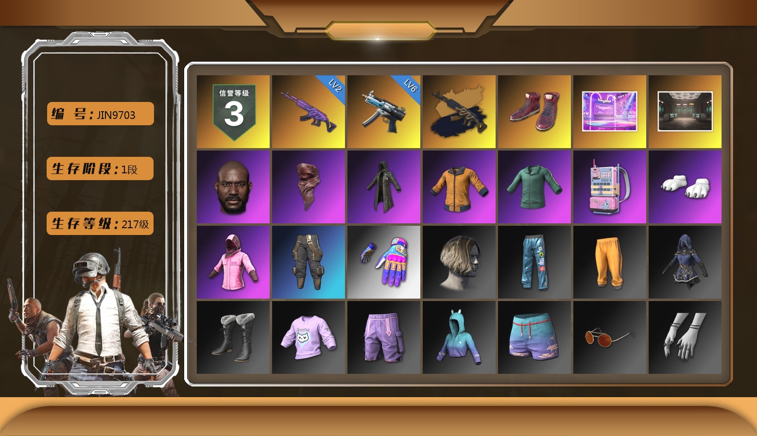 生存4阶信誉2级 糖果10级异色孙悟空6级AK-2级烟雾弹 绿头黑鬼绿东南亚悲喜萨芬裤熊爪红鞋