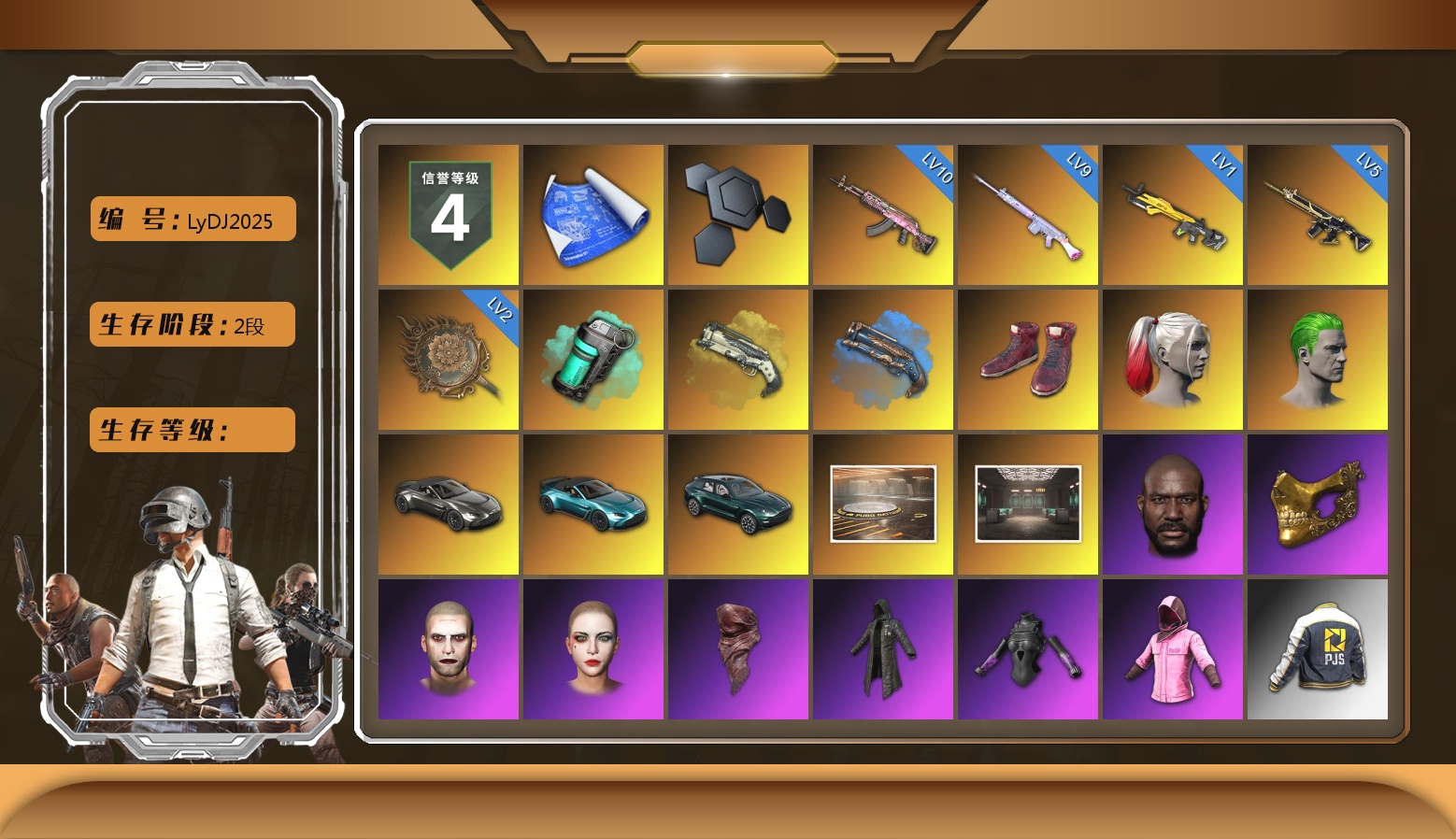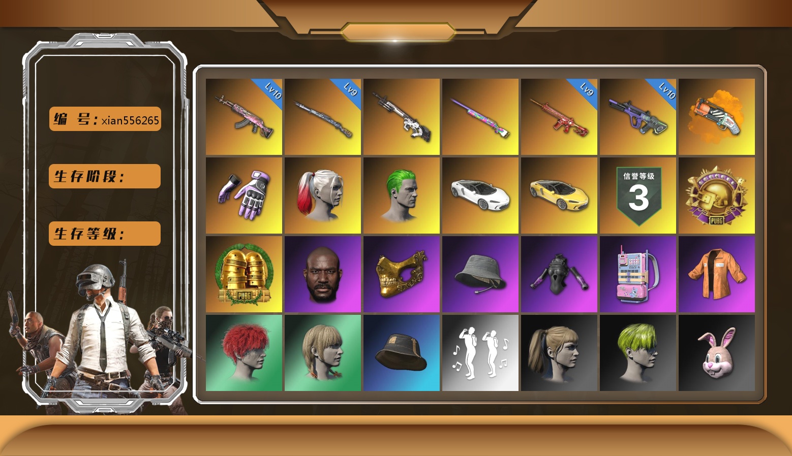回-170 220级 信誉等级2 无信号m4 9级 弹珠aug 2级 德拉贡 无重力 午夜98k 异色无信号 兰博基尼suv 黑人 2021pgc黄金面具 拉风龙套 北极熊