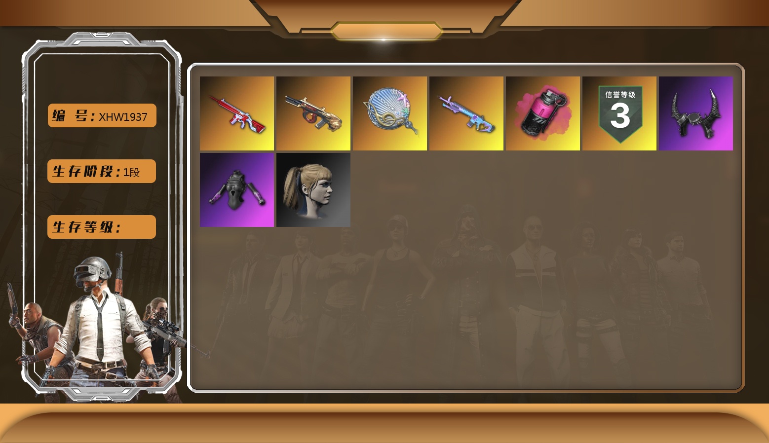 XHW1937一阶段 信誉三级 5-1-1-2 5级无信号 1级新AUG 1级魔咒 带车大厅 牛角 朋克马尾 红烟 发光手臂