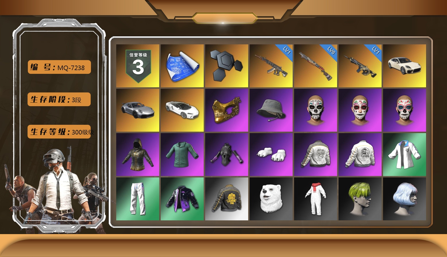 ID[270607][HZ2942]捕食者金标 10级霓虹AUG 8级青龙762 8级朱雀M4 6级沙悟净MINI 6级孙悟空M24 4级赛博MK12 2级玩偶炮 1级猛虎98k 1级恶魔ACE 1级德拉贡 1级时空使者M4 2级白虎锅 青龙762(异色) 珊瑚色烟雾弹 黄色狂怒之雾-M79 湛蓝狂怒之雾-M79 柏林鞋 保时捷911 兰博基尼跑车 兰博基尼SUV 兰博基尼奢华版 马丁SUV 杜卡迪翡翠绿 交易所接待室 黑鬼 滑雪镜 金面 卡崔娜 橙色发带 红面巾 黑大衣 白战神 黄东 活动绿东 发光手臂 电磁背包 白熊鞋 拉风龙 车漆 小马尾 丸子头 西游记 脏辫 青海摇 小兔学院 绷带AK