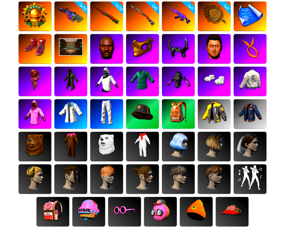 5张图纸 蜗牛币 6940聚合物 10级火麒麟 10级爆裂AUG 9级彩虹M24 9级妖魔之触ACE 3级唐三藏平底锅 1级无信号M4 1级午夜惊魂98K 爆裂AUG(异色) 蓝色烟雾弹 翡翠色烟雾弹 品红色烟雾弹 橙色狂怒之雾-M79 黄色狂怒之雾-M79 深红狂怒之雾-M79 柏林鞋 小黑盒 黑绷带 小丑女 小丑男 兰博基尼SUV 马丁跑车 陈列室 冬季藏匿处 交易所接待室 武器神龛 黑鬼 滑雪镜 9s发型 金面 丑男妆容 马东锡 橙色发带 红面巾 黑大衣 小战神 活动绿东 发光手臂 电磁背包 白熊鞋 粉战神 阿狸 小黄鸭 可可 尼尔 拉风龙 鸡斯卡夹克 车漆 小马尾 丸子头 西游记 青海摇 小兔学院 悲喜 滑雪帽 胜利之舞39 枪炮洗礼