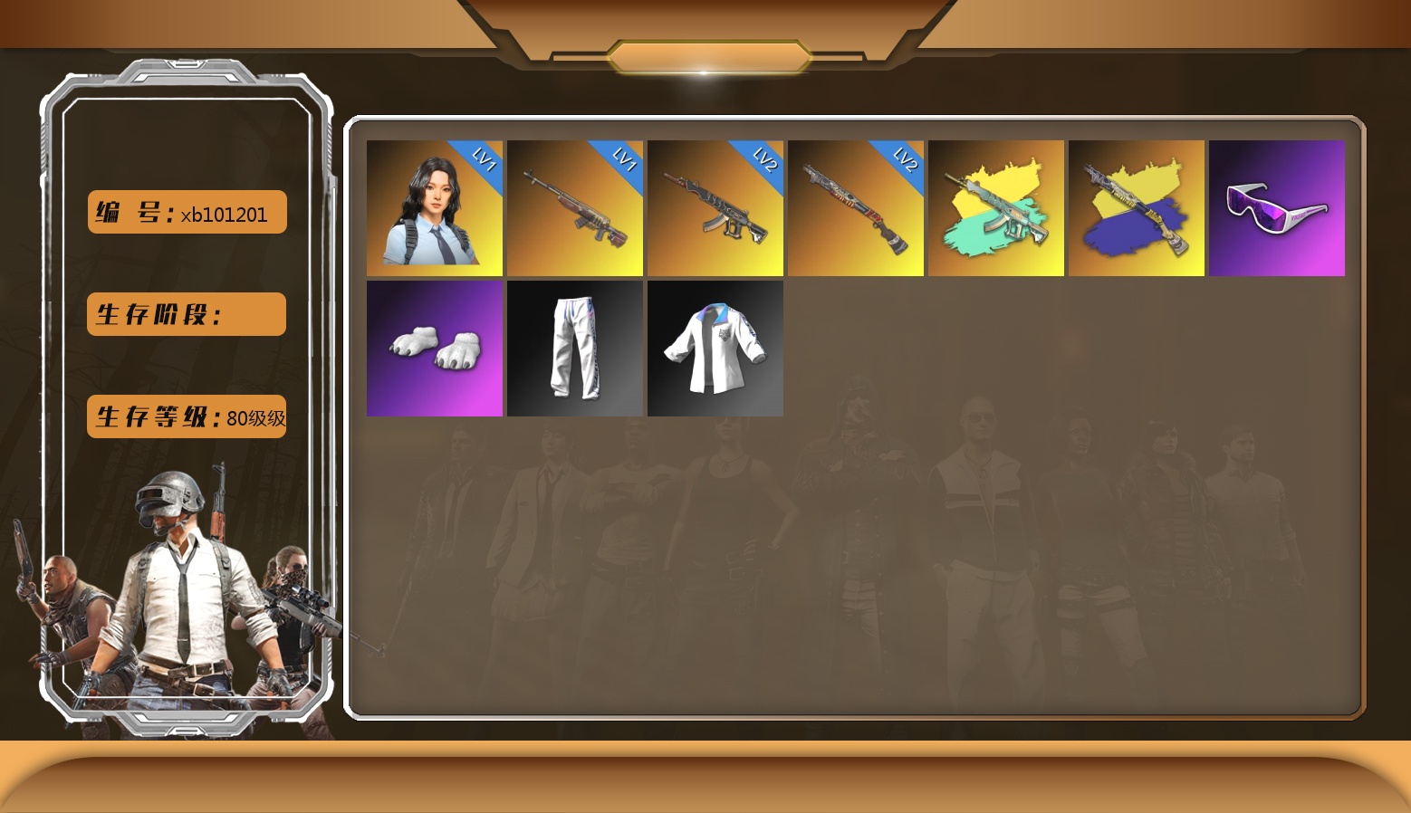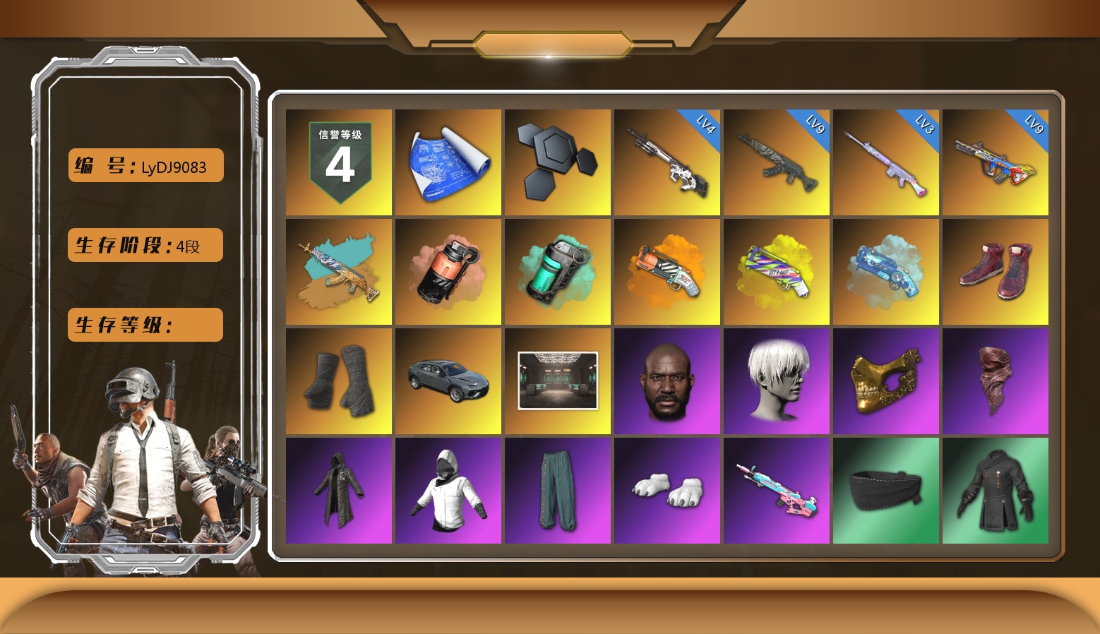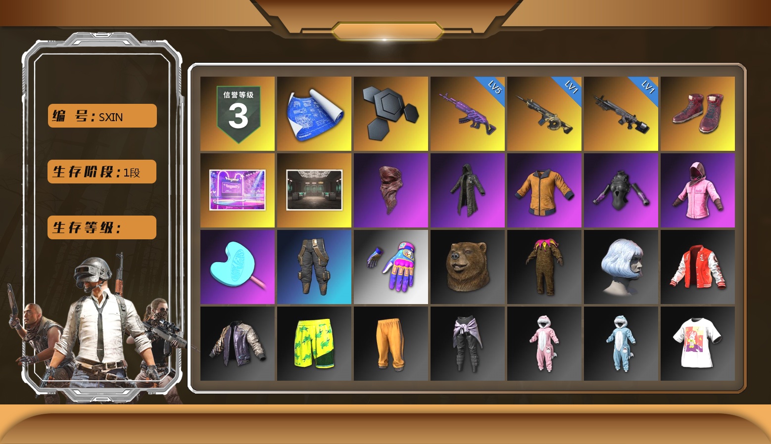 3阶段 小马尾 粉头 滑雪镜 金面 渔夫帽 黑鬼 电磁背包 发光手臂 黑盒手套 小战神 杜卡迪 8成长 满级火麒麟 齿轮炮