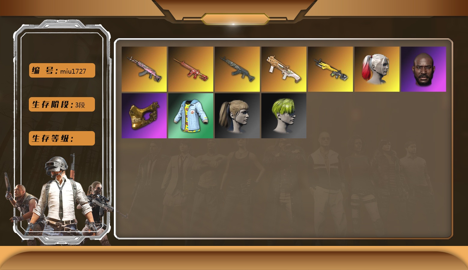 9级水麒麟 8级朱雀M4 8级霓虹AUG 1级圣诞AK 1级德拉贡 蓝色烟雾弹 青色烟雾弹 柏林鞋 黑绷带 马丁跑车 交易所接待室 1张图纸 1556聚合物 9s发型 滑雪镜 金面 马东锡 橙色发带 红面巾 黑大衣 小战神 竞猜裤 白熊鞋 英特尔夹克 粉战神 滑雪帽 阿狸 尼尔 鸡斯卡夹克 小马尾 粉头 丸子头 西游记 小兔学院 悲喜