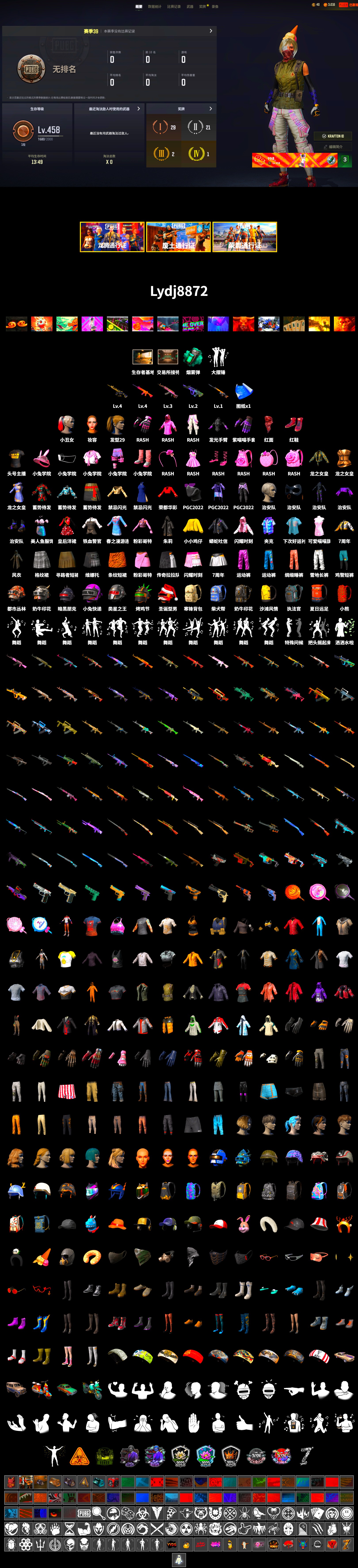 ❤找回包赔❤皮肤:4级南瓜M4 4级猪八戒M4 3级火麒麟 2级霓虹AUG 1级齿轮炮 青色烟雾弹 柏林鞋 小丑女 交易所接待室 信誉等级三 1张图纸 丑女妆容 红面巾 黑大衣 发光手臂 粉战神 香寒发箍 小马尾 发型21 发型24 类星之王 大摆锤 哈莉·奎茵「老爸的小怪物」服饰 闪亮运动裤 紫色运动裤 战术科技裤 蓄势待发 蓄势待发 蓄势待发 蓄势待发 小青龙头套 小青龙玩偶服 小青龙脚套 速度与愤怒 维娜托手套 维娜托口罩 维娜托水手 维娜托短裙 维娜托短靴 绒汪汪 紫喵喵手套 紫喵喵卫衣 紫喵喵长裤 紫喵喵短靴 上校的渔夫帽 上校的夹克 鸡警短裤 沉睡女王 绸缎长袖 绸缎睡裤 头号主播 战术科技夹克 蜘蛛纹身 小兔学院 哥特上衣 哥特短裙 哥特长靴 悲喜 晚秋-M416 RASH悲喜和我结婚吧 - M416 无慈悲 - M416 蟒蛇花园 - M416 花开富贵 - M416 守护兽的凝视 不朽金箍 齿轮头 - Beryl M762 不给糖就捣蛋 - M416 霓虹之梦 - AUG 迪斯科舞会 PGC 2022 王牌登场 - Beryl M762 催眠状态 双龙出海 游戏结束 梅花同花 - Beryl M762 山花烂漫 - Beryl M762 凯尔特结 - Beryl M762 绷带AK 蟒蛇花园 - AKM 鲜花之力 - AKM 带刺之美 - AKM 守望之龙 - AUG 糖果碗 - ACE32 镀银 - SCAR-L 疯狂收割者 - SCAR-L 恶战 - M16A4 甜蜜外衣 - M16A4 双色 - M16A4 游猎之旅 - M16A4 数码丛林迷彩 - M16A4 绿地迷彩 - QBZ 袜中好礼 - QBZ 分秒必争 - QBZ 这不是玩具 - Mk47 Mutant 方形铬印 - Mk47 Mutant 灰色系 - Mk47 Mutant 双色 - Mk47 Mutant 淡雅之力 - Mk47 Mutant 丛林潜行者 - G36C 水手 - G36C 标准猎手 - G36C 标准猎手 - Groza 方形铬印 - Groza 镀金 - Groza 山花烂漫 - Groza 无尽迷宫 - Groza 钴蓝呼号 - K2 淬火真金 - K2 无慈悲 - K2 无拘来世 - K2 雪花 - K2 水手 - SLR 分形几何 - SKS 镀金 - SKS 圣诞猎手 - SKS 皇家舰队 - Mini14 数码沙漠迷彩 - Mini14 夏日冲浪 - Mini14 拼图 - Mini14 甜蜜外衣 - Mini14 银河小队 - Mk12 守望之龙 - Mk12 红桃同花 - Mk12 幽灵之握 - Mk12 孙悟空 - Mk14 雪国风光 - Mk14 花呢控 - VSS 爬行者之印 - VSS 璀璨星光 - QBU 蟒蛇花园 - QBU 数码沙漠迷彩 - Win94 镀金 - Win94 拼图 - Win94 无慈悲 - Kar98k 悠扬情歌 - Kar98k 数码沙漠迷彩 - Kar98k 猪八戒 - AWM 鲜花之力 - AWM 镀金 - AWM 疯狂收割者 - M24 幽灵之握 - M24 蝶舞云端 - M24 爬行者之印 - 莫辛纳甘步枪 王牌 - 莫辛纳甘步枪 雪花 - MP5K 双色 - MP5K 唐三藏 - FAMAS 沙悟净 - P90 方形铬印 - PP-19 Bizon 双色 - PP-19 Bizon 彩虹之上 - UMP 镀金 - UMP 镀银 - UMP 标准猎手 - UMP 钴蓝呼号 - UMP 竞速之道 - UMP 愉悦的绿松色 - 汤姆逊冲锋枪 朱雀之灵 - Vector 魔女之力 - Vector 镀金 - Vector 三重彩 - Micro UZI 爬行者之印 - M249 圣诞猎手 - M249 锁链帮 - DP-28 游猎之旅 - DP-28 三重条纹 - DP-28 雪花 - DP-28 幽灵之握 - DBS 双色 - DBS 镀金 - 锯短型霰弹枪 都市猎手 - 锯短型霰弹枪 丛林潜行者 - 锯短型霰弹枪 数码沙漠迷彩 - 锯短型霰弹枪 暗红枪匠 - S12K 无尽迷宫 - S12K 游猎之旅 - S12K 这不是玩具 - S1897 淡雅之力 - S1897 波涛荡漾 - S686 双色 - S686 灰色系 - S686 淡雅之力 - S686 三重彩 - P92 双色 - P92 数码沙漠迷彩 - P92 丛林潜行者 - P92 沙漠烈阳 - 沙漠之鹰 三重条纹 - 沙漠之鹰 淡雅之力 - R1895 水手 - R1895 数码沙漠迷彩 - R45 双色 - P1911 钴蓝呼号 - P18C 水手 - P18C 哈莉·奎茵‘晚安’棒球棒 PUBG信条钢管 朋克战斧 三重条纹 - 撬棍 双色镰刀 淡雅之力 - 镰刀 山花烂漫 - 十字弩 双色 - 十字弩 甜蜜外衣 - 十字弩 恶战 - 十字弩 RASH悲喜和我结婚吧 - 平底锅 你的第一锅 - 平底锅 7周年快乐 - 平底锅 鸡斯卡 - 平底锅 碎瓜者 - 平底锅 神秘危险品手套 7周年快乐手套 秋日生存者手套 小兔学院水手服手套 类星之王的手套 队长的迷彩手套 准备就绪手套 铁血警官的手套 骷髅脸特技手套 朱莉的手套 熊猫手套 雪片手套 PGC 2022 战术科技手套 PCS3 逐日者手套 书虫眼镜(粉红色) 荣都学者眼镜 技工墨镜(白色) 美人鱼妆容 匕首纹饰加红晕妆容 发型44 发型39 发型37 美人鱼发型 发型58 发型55 治安队发型 发型26 法兰绒小熊背包(3级) 执法官背包(3级) 寒锋背包(3级) 奶牛印花背包(3级) 锦鲤随行背包(2级) 小兔快递背包(2级) 肆意挥洒背包(2级) 陈旧皮革背包(2级) 圣龙之心背包(2级) 勇往直前背包(1级) 神枪手背包(1级) 小兔快递 - 头盔(3级) 奶牛印花 - 头盔(3级) 暗黑朋克 - 头盔(3级) 类星之王 - 头盔(3级) 都市丛林 - 头盔(3级) 小兔快递 - 头盔(2级) 零度机能风车手 - 头盔(2级) PUBG信条 - 头盔(2级) 7周年快乐甜筒帽 缎带沙滩帽 准备就绪鸭舌帽 队长的迷彩鸭舌帽 小兔快递制服鸭舌帽 亮片鸭舌帽配耳机(紫水晶色) 咖啡王鸭舌帽 雪色美人帽 光彩夺目鸭舌帽配耳机(金色) 熊猫发箍 小飞鸡脖枕 西部警官面巾 治安队面具 准备就绪口罩 胜利收割者面具 队长的迷彩面巾 铁血警官的面罩 暗影卫队面罩 绸缎睡眠眼罩 PGC 2022 战术科技面罩 白龙骑士夹克 蟒蛇吐信夹克 黄金机会夹克 准备就绪夹克 我的闪耀时刻连帽夹克 水色突击夹克 荣都华彩上衣 类星之王的背心 巨蟒王后长款夹克 巨龙之母服饰 锦鲤唐装 治安队外套 禁忌闪光夹克 禁忌闪光旗袍 夏日豹纹比基尼 午餐肉的潜行者夹克 类星之王的夹克 雪色美人夹克 骑师夹克 荣都华彩夹克 生意兴隆夹克 赫尔墨斯之翼夹克 时尚朋克上衣 朱莉的上衣 朱莉的防尘外套 龙年大吉连帽卫衣 美人鱼服饰 荒地皮马甲 龙之女皇的丝绸衬衫 龙之女皇束腰 龙之女皇服饰 小小