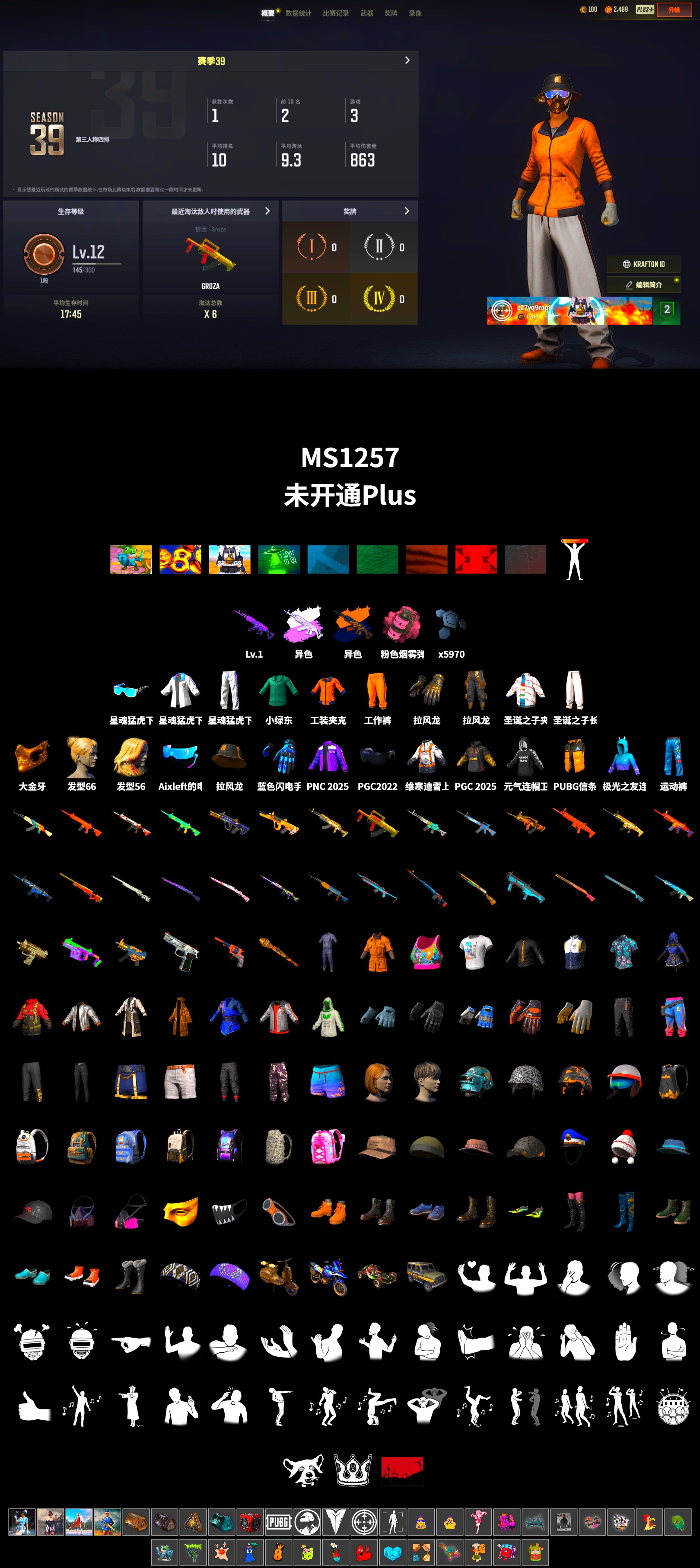 ❤找回包赔❤皮肤:免费版 1级美杜莎762 美杜莎(异色) 信誉等级二 5970聚合物 金面 黄东 活动绿东 星魂猛虎下山运动夹克 星魂猛虎下山运动裤 拉风龙 Aixleft 发型56 发型24 人型看板 星魂猛虎下山滑雪镜 银色美人飞行员夹克 闪亮运动裤 工作裤 银河系女孩 银河系女孩 极光之友 极光之友 维寒迪雪上运动夹克 维寒迪长裤 金墨点染 金墨点染 金墨点染 群雄逐鹿 金墨点染 2级包 曼迪3级包 粗糙 (橙色) - M416 晚秋-M416 柠檬汁 - M416 PGC 2021 群雄逐鹿 - Beryl M762 标准猎手 - AKM 西游记 粗糙 (橙色) - SCAR-L 银河卫士 - SCAR-L 蔚蓝挑战者 - SCAR-L 柴犬帮 - SCAR-L 甜蜜外衣 - M16A4 灵魂枷锁 - Mk47 Mutant 双色 - Mk47 Mutant 镀金 - Groza 无慈悲 - K2 唐三藏 - SLR 金色落叶 - SKS 夏日冲浪 - Mini14 PGC 2023 皇冠宝石 - Mk12 红桃同花 - Mk12 雪国风光 - Mk14 这个夜晚不太静 - 德拉贡诺夫 悠扬情歌 - Kar98k 镀金 - AWM 幽灵之握 - M24 碰撞测试 - MP5K 风化野马 - 汤姆逊冲锋枪 渗透与破坏 - Vector 精致赫尔墨斯 - Micro UZI 双色 - DBS 波涛荡漾 - S12K 水手 - S1897 华夫饼 - S686 双色 - S686 三重彩 - P92 水手 - R1895 PUBG信条钢管 人类猎手手套 维寒迪雪上运动手套 露指操作员手套 蓝色闪电手套 网格手套 金底耐磨手套 朋克眼镜 PGC 2022 斑斓危机墨镜 发型12 发型66 钞能力背包(3级) 米拉玛地图背包(2级) 勇往直前背包(1级) 维寒迪雪上运动背包(1级) PUBG信条 - 头盔(2级) 银色迷彩 - 头盔(2级) 维寒迪雪上运动 - 头盔(1级) 咆哮之力街头风面罩 旅游陷阱圆顶帽 夏日渔夫帽(蓝绿色) 准备就绪鸭舌帽 短式无边帽(黑色) 巡逻帽 (棕色) PGC 2023 女皇的帽子 PGC 2023 女皇的金色面具 防毒面具 (半面罩) 准备就绪夹克 咆哮之力街头风背心 花衬衫(蓝绿色) 夏日短裤(灰色) 公路战士夹克 生存练习生连帽卫衣 PUBG信条马甲 复古沙漠战斗外套 阳光普照T恤 皮革连身衣(黑色) 棕熊猎人外套 PGC 2023 女皇的外套 PGC 2023 女皇的马甲 PNC 2025 夹克 准备就绪长裤 时尚朋克长裤 咆哮之力街头风运动裤 通风操作员裤(黑色) PGC 2023 女皇的吊袜带 夏日泳装脚蹼 咆哮之力街头风便鞋 沙滩鞋(蓝绿色) 维寒迪雪上运动短靴 操作员靴子 工作靴 PGC 2023 女皇的长靴 巨龙之母长靴 孤狼生存者 “专业守卫” 乌阿斯吉普车 “加塔尔越野赛”摩托车 “捕食者” 小型摩托车 “银河小队漫游者” 双人越野车 胜利之舞112 Victory Dance - 8th Anniversary 胜利之舞136 按个门铃 动动脑子 胜利之舞29 吓成木乃伊 弱爆了 特殊问候 胜利之舞26 嫉妒 棒棒哒 挑衅 投降 不耐烦 谢谢 停止! 抖缩 庆祝 哭 踢 笑 愤怒 同意 反对 你好 大厅姿势1 走吧! 你完蛋了 耸肩 过来 鼓掌 波普风 - 头盔(3级) 王牌登场 柴犬帮背包(3级) PGC 2021 降落伞 PGC 2023 女皇套装 疯狂护士套装 胜利收割者套装 雪色美人套装 祝您好胃口 红色预警 四条A 圣诞之子长裤 被催眠的小浣熊 圣诞之子夹克 圣诞之子针织帽 小鸡吐息 孤独情人降落伞 食物中毒 圣诞之子短靴 化学战