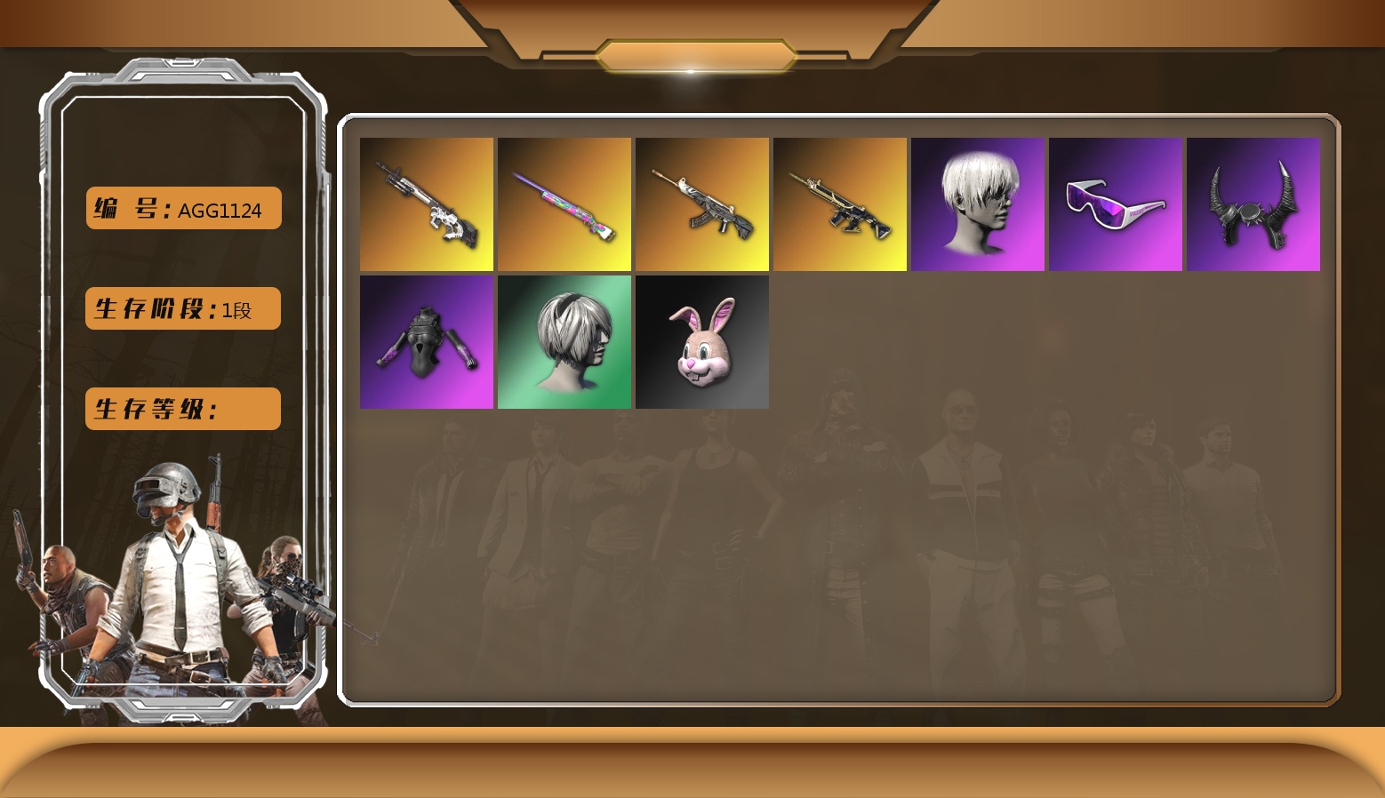 法-1498 1328级 信誉等级3 弹珠aug 10级 美杜莎762 10级 赛博朋克mk12 7级 无信号m4 唐僧平底锅 2级 异色弹珠 异色美杜莎 黑人 尼尔套 渔夫帽 发光手臂 2021pgc黄金面具 白战神 黄东南亚 悲喜战神套