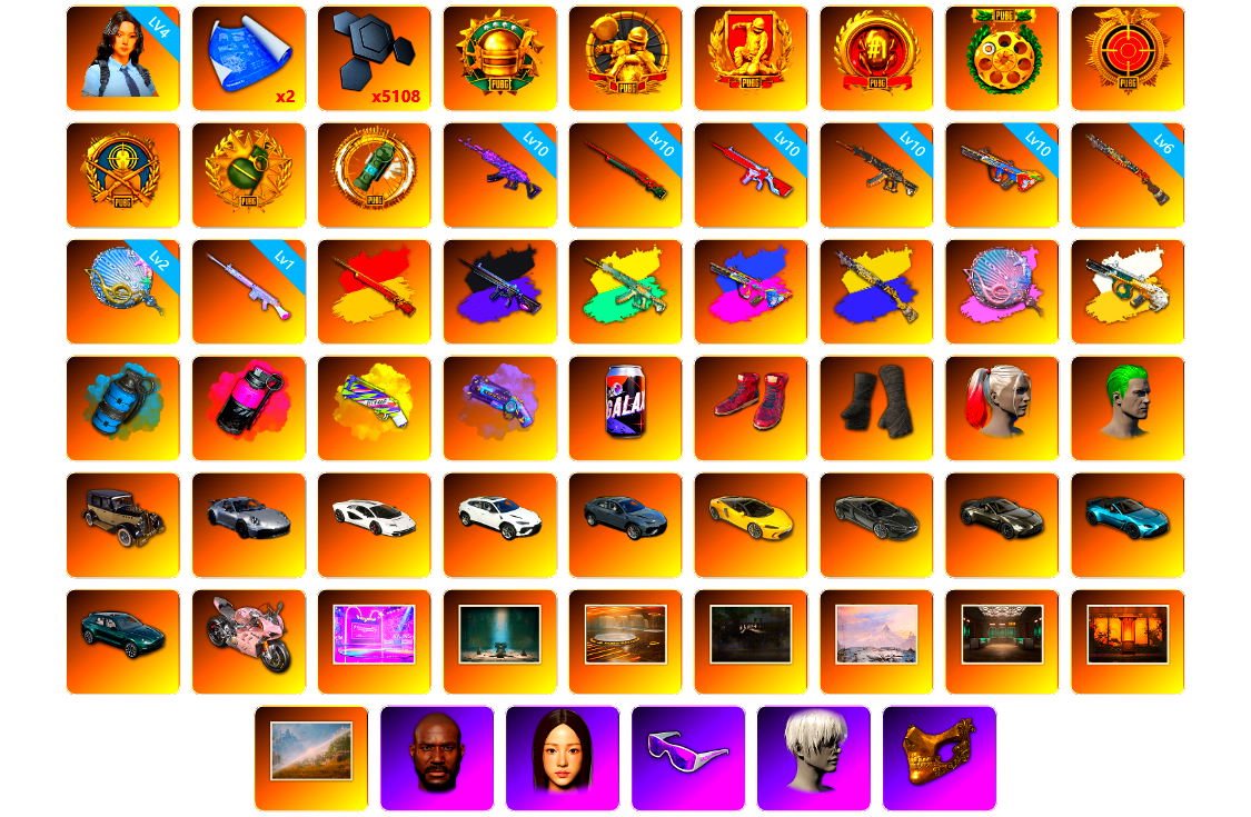 4级瀚娜 2张图纸 5108聚合物 10级美杜莎762 10级孙悟空M24 10级无信号M4 10级妖魔之触ACE 10级爆裂AUG 6级烈日灼烧-S1897 2级塞壬平底锅 1级玩偶炮 孙悟空M24(异色) 无信号M4(异色) 妖魔之触(异色) 爆裂AUG(异色) S1897(异色) 塞壬 - 平底锅(异色) 弥诺陶洛斯AUG(异色) 天蓝色烟雾弹 品红色烟雾弹 黄色狂怒之雾-M79 紫色魔法迷雾-M79 柏林鞋 黑绷带 小丑女 小丑男 保时捷911 兰博基尼跑车 兰博基尼SUV 兰博基尼奢华版 迈凯伦玛瑙黑版 马丁跑车 马丁敞篷跑车 马丁SUV 杜卡迪叛逆玫瑰 女团大厅 胜利密室 陈列室 兰博大厅 冬季藏匿处 交易所接待室 武器神龛 黑鬼 MINJI 滑雪镜 9s发型 金面 渔夫帽 牛角 丑男妆容 马东锡 内马尔 橙色发带 红面巾 黑大衣 白战神 黄东 活动绿东 发光手臂 竞猜裤 电磁背包 萨芬裤 白熊鞋 小叮当 粉战神 2024女团 aespa女团 阿狸 小黄鸭 可可 尼尔 布朗熊 拉风龙 车漆 小马尾 小绿头 粉头 丸子头 西游记 脏辫 爱的主打歌 青海摇 小兔学院 街头霸王 悲喜 绷带AK 胜利之舞39 嘉米-加农钉 隆-升龙拳 枪炮洗礼