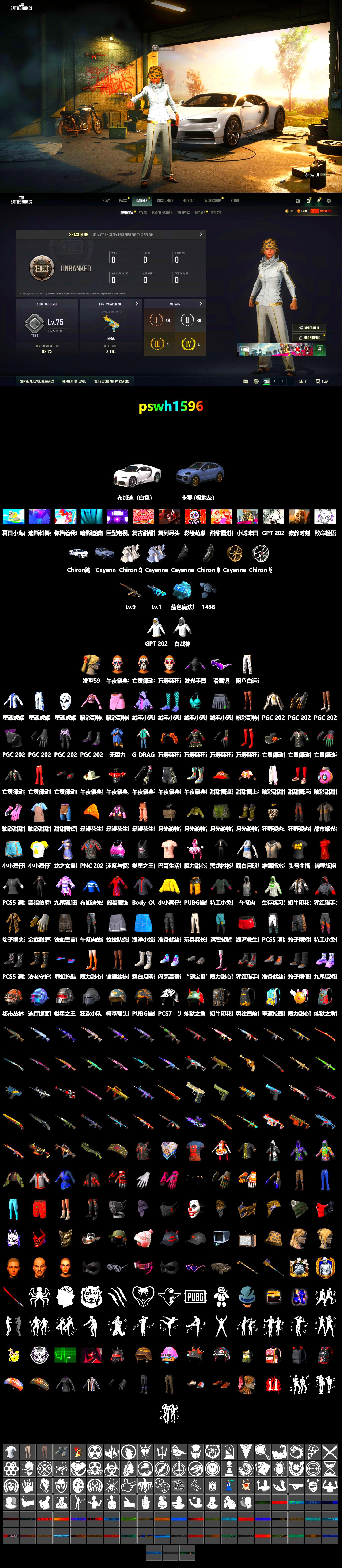 ❤找回包赔❤皮肤:9级妖魔之触ACE 1级GD-AUG 蓝色魔法迷雾-M79 保时捷卡宴 布加迪跑车 信誉等级四 1张图纸 1456聚合物 滑雪镜 亡灵律动妆容 万寿菊狂欢妆容 午夜祭典妆容 白战神 发光手臂 滑雪帽 青海摇 车漆 Cayenne Turbo GT Paint (Arctic Grey) Body_OU_04 唯一甜甜圈背包(3级) 果酱甜甜圈 - 头盔(3级) 釉彩甜甜圈面具 暴躁花生针织帽 甜甜圈遮阳帽 釉彩甜甜圈衬衫 釉彩甜甜圈运动鞋 甜甜圈运动鞋 甜甜圈短裤 G-DRAGON 的 PEACEMINUSONE 服饰 暴躁花生连帽卫衣 暴躁花生长裤 釉彩甜甜圈运动裤 星魂虎耀星辉面具 星魂虎耀星辉瑜伽上衣 星魂虎耀星辉工装裤 加油!连帽卫衣 无重力披风 战术科技裤 特工小兔长袖上衣 特工小兔长裤 棉花糖短裤 速度与愤怒 维娜托水手 欢快麋鹿 鸡警短裤 头号主播 2025夹克 太阳之子电波干扰背包 金墨点染 群雄逐鹿 群雄逐鹿 金墨点染 开拓者墨镜 开拓者手套 开拓者夹克 魔力甜心萨莉的礼服(粉红色) 萨莉的皮鞋 萨莉的礼服 萨莉的长靴 萨莉2级包 绒毛小恶魔上衣 绒毛小恶魔夹克 绒毛小恶魔短裙 绒毛小恶魔圆头鞋 哥特上衣 哥特短裙 哥特长靴 发型59 PGC 2021 群雄逐鹿 - M416 雪国风光 - M416 PNC 2022 连战连捷 - M416 [战场痕迹] 金色落叶 - M416 彩糖蛋糕 - M416 肾上腺素 迪斯科舞会 你挡着我晒太阳了! PGC 2022 王牌登场 - Beryl M762 礼物环绕 - Beryl M762 [战场痕迹] 湮灭 - Beryl M762 魔女之力 - Beryl M762 [战场痕迹] 青花之力 - Beryl M762 山花烂漫 - Beryl M762 毒性 - Beryl M762 [战场痕迹] 破碎元素 - AKM 魔力甜心萨莉的挚友 - AKM 金色落叶 - AKM 灵魂枷锁 - AKM 带刺之美 - AKM 疯狂收割者 - SCAR-L 华夫饼 - M16A4 分形几何 - QBZ 无尽迷宫 - Mk47 Mutant 钴蓝呼号 - G36C 铜色猎手 - Groza 镀金 - Groza 无拘来世 - K2 淬火真金 - K2 [战场痕迹] 漫彩四溢 - SLR [战场痕迹] 漫彩四溢 - SKS 夏日冲浪 - Mini14 银河小队 - Mk12 雪国风光 - Mk14 斑点狗 - VSS 镀金 - Win94 礼物环绕 - Kar98k [战场痕迹] 镀金枪儿响叮当 - Kar98k PNC 2023 完美角度 - Kar98k 镀金 - AWM [战场痕迹] 粉梦长眠 - M24 爬行者之印 - 莫辛纳甘步枪 疯狂收割者 - MP5K 竞速之道 - P90 镀金 - UMP 竞速之道 - UMP 雪国风光 - 汤姆逊冲锋枪 嗜血者 - Vector 地狱火 - Vector 抽象派 - Vector 钴蓝呼号 - Micro UZI 镀金 - 锯短型霰弹枪 死亡六进制 - 锯短型霰弹枪 无尽迷宫 - S12K 数码沙漠迷彩 - P92 都市猎手 - P92 华夫饼 - R1895 钴蓝呼号 - P18C PUBG信条钢管 守墓者手杖 猩红复仇之剑 都市猎手 - 十字弩 秋日生存者手套 哥特戒指 侠盗猫手部装饰 队长的迷彩手套 准备就绪手套 PGC 2022 战术科技手套 般若手套 布加迪先生手套 午夜祭典手套 万寿菊狂欢手套 亡灵律动手套 金底耐磨手套 百叶窗太阳镜(银色) 夏日爱心太阳镜 匕首纹饰加红晕妆容 女性面容10 午餐肉 发型44 发型93 发型85 奶牛印花背包(3级) 彩绘祭坛背包(2级) 马桶人背包(2级) 勇往直前背包(1级) 太阳之子 - 头盔(2级) 类星之王 - 头盔(3级) 马桶人 - 头盔(3级) 都市丛林 - 头盔(3级) 狂欢小队 - 头盔(3级) 噬命雏菊 - 头盔(2级) 柯基帮头盔(2级) PCS7 - 头盔(2级) PUBG信条 - 头盔(2级) 准备就绪鸭舌帽 队长的迷彩鸭舌帽 猩红猎手鸭舌帽 牛仔卷边帽(黑色) 虎纹头巾 亡灵律动帽子 监控人头套 万寿菊狂欢发带 午夜祭典帽子 特种女电视人头套 豹子精渔夫帽 准备就绪口罩 暗夜兔女郎面具 PCS2 隐形生存者面巾 PGC 2023 帝皇的荆棘面具 迷雾追踪者口罩 暗夜猎手面巾 队长的迷彩面巾 猩红猎手面具 幸运怪盗面具 PGC 2022 战术科技面罩 侠盗猫面具 豹子精面具 般若面具 九尾狐面具 狂野姿态上衣 月光游牧者上衣 布加迪先生高领毛衣 奶牛印花夹克(黑色) 准备就绪夹克 霓虹纹饰连帽卫衣 午餐肉的连帽卫衣 猩红猎手夹克 PCS5 清场能手夹克 类星之王的背心 锦鲤旗袍 露白月明旗袍 PCS5 清场能手T恤 龙之女皇服饰 小小鸡仔外套 PNC 2022 连战连捷夹克 生存练习生连帽卫衣 PUBG信条马甲 巴哥生活好T恤 水手披巾 Land Loot Survive T恤 小小鸡仔T恤 黑暗伯爵礼服 黑龙衬衫配长裤 T 恤 (白色) PGC 2023 女皇的外套 布加迪先生夹克 特种女电视人夹克 午夜祭典上衣 万寿菊狂欢连衣裙 亡灵律动衬衫 亡灵律动夹克 豹子精夹克 都市耀光夹克 月光游牧者夹克 九尾狐服饰 豹子精上衣 火力四射夹克 般若服饰 午餐肉的短裤 PCS5 清场能手长裤 准备就绪长裤 锦鲤丝袜配高跟鞋 清风徐来喇叭裤 战斗裤 (棕色) 战斗裤 (卡其色) 小小鸡仔短裤 铁血警官的短裙 海湾救生员泳裤 圣诞短裤(红色) 玩具兵长裤 拉拉队条纹短裙 海洋小姐短裙 布加迪先生长裤 午夜祭典短裤 万寿菊狂欢长靴 亡灵律动长裤 特种女电视人紧身裤 月光游牧者短裙 狂野姿态褪色牛仔裤 豹子精短裤 霓虹拖鞋 “熊宝贝”脚套 闪亮高帮短靴(粉红色) 准备就绪运动鞋 高帮运动鞋 猩红猎手短靴 PCS5 清场能手短靴 法老守护者短靴 露白月明长靴 PGC 2022 战术科技短靴 牧场牛仔裤(棕色) 布加迪先生皮鞋 亡灵律动皮鞋 午夜祭典短靴 月光游牧者短靴 九尾狐短靴 豹子精便鞋 般若足具 孤狼生存者 “毒蛇猎手” 两栖装甲车 G-DRAGON - TAKE ME G-DRAGON - PO₩ER G-DRAGON - HOME SWEET HOME 胜利之舞91 胜利之舞48 PNC 2022之舞 - 冠军之争 胜利之舞89 胜利之舞54 胜利之舞35 盛大庆典 在这儿! 胜利之舞31 胜利之舞23 胜利之舞119 特殊问候 师傅!请受徒儿一拜! 嫉妒 棒棒哒 挑衅 投降 不耐烦 谢谢 停止! 抖缩 庆