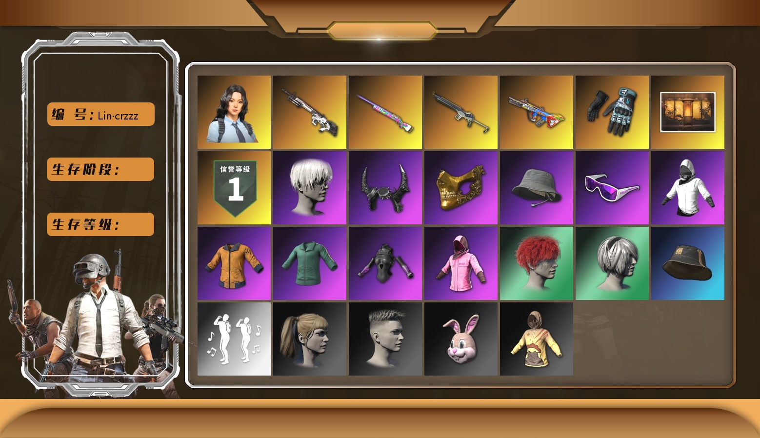 赛博MK12 彩虹M24 金面 渔夫帽 滑雪镜 小马尾 尼尔 小兔手套 烟雾弹 生存等级 五阶段 沙悟净MINI 杜卡迪 爆裂AUG SUV 白战神 黄东 信誉等级 信誉等级一 粉战神 发光手臂 牛角 9s发型 小兔学院 小叮当 西游记 阿狸 危险玩偶屋 拉风龙 悲喜 1级 1级 4级 2级 是否可排位 是 瀚娜 一级 武器神龛 活动绿东