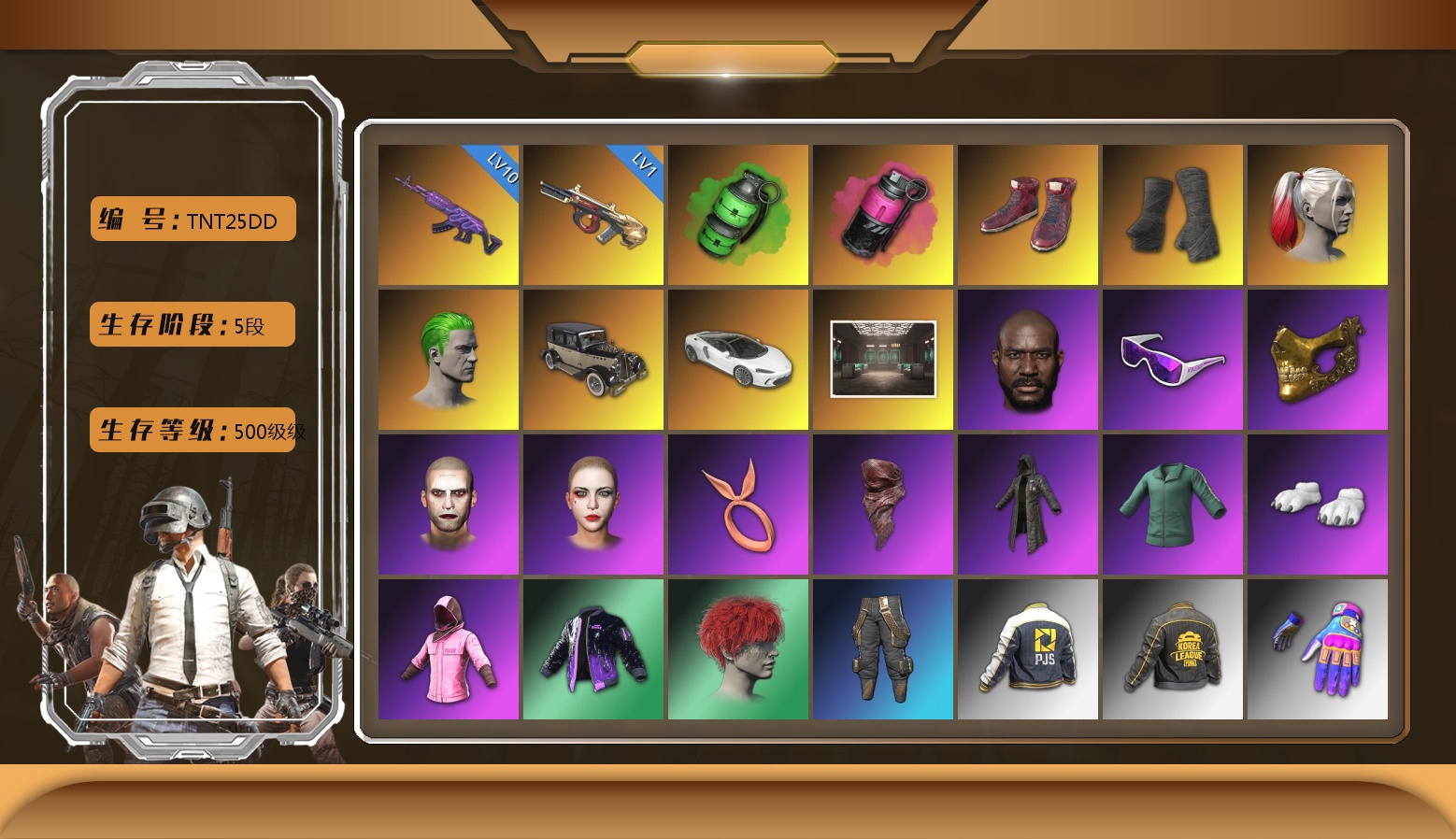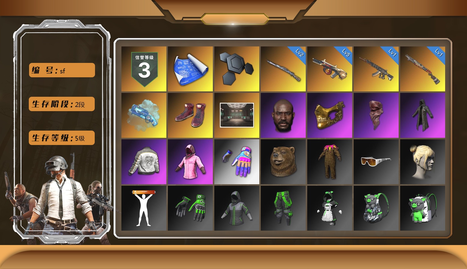 5级美杜莎762 1级无信号M4 1级弥诺陶洛斯AUG 1级德拉贡 4张图纸 8848聚合物 柏林鞋 保时捷卡宴 冬季藏匿处 黑鬼 滑雪镜 金面 红面巾 黑大衣 发光手臂 脏辫 小兔学院 悲喜 滑雪帽 PGC 2021套装