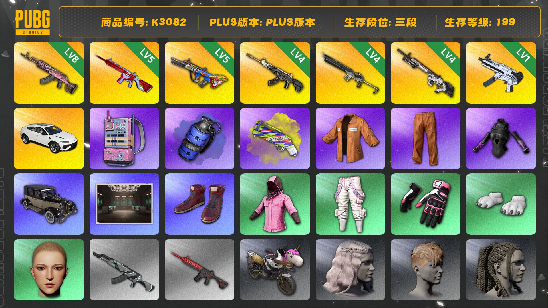[K3082]3段199级 信誉4 8级火麒麟,4级赛博MK12,4级恶魔ACE,5级无信号M416,5级爆裂弹球AUG,1级无重力MP5K,4级沙悟净Mini14,兰博基尼,兰博SUV,烟枪,烟雾弹,橙运动,发光手臂,蓝色烟雾弹,黄色狂怒之雾 - M79,电磁包,西游记套装,唐三藏