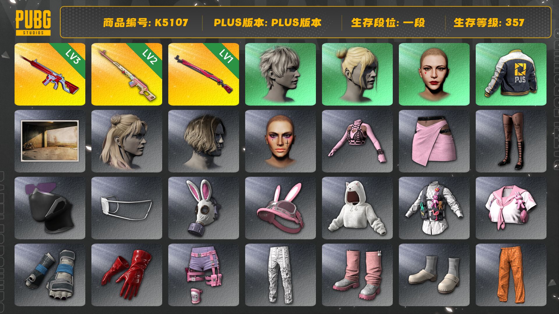 [K5107]1段357级 信誉2 3级无信号 2级德拉贡 1级午夜 丸子头