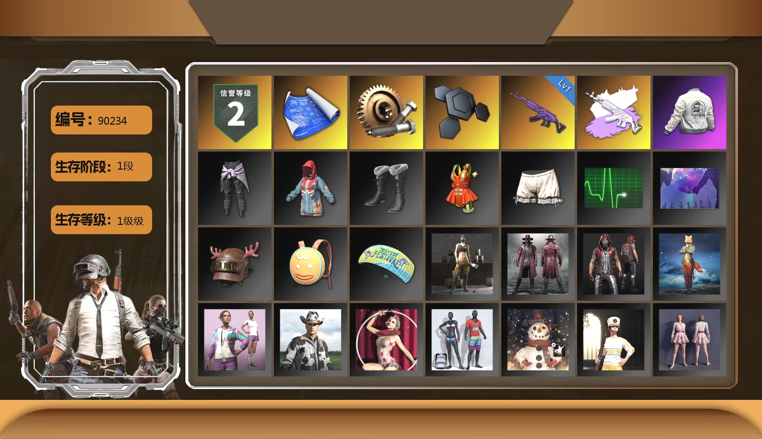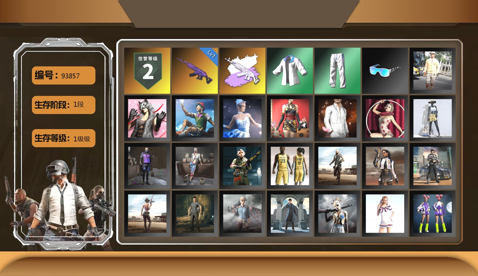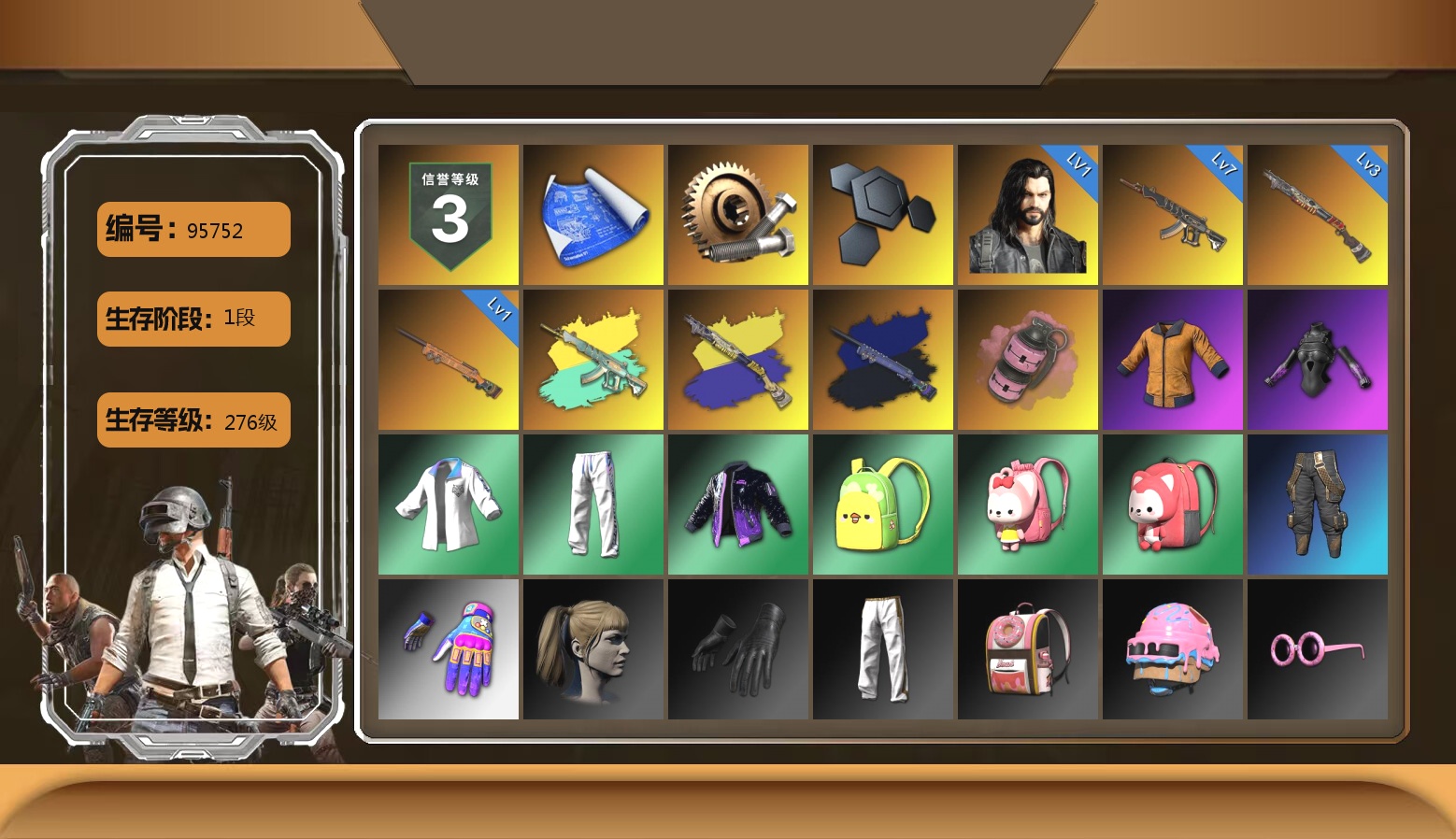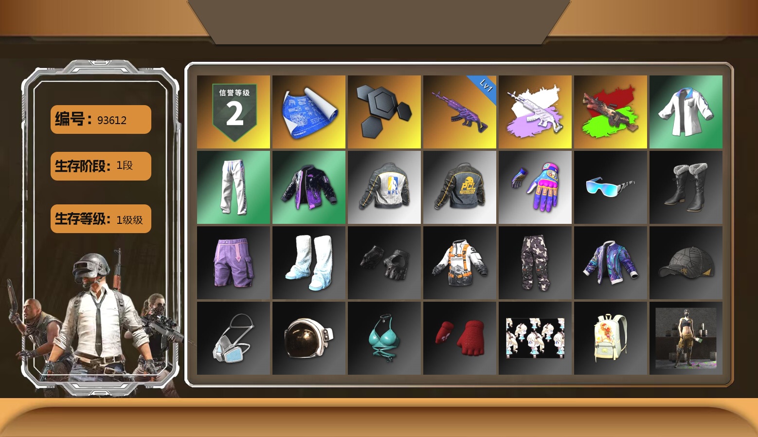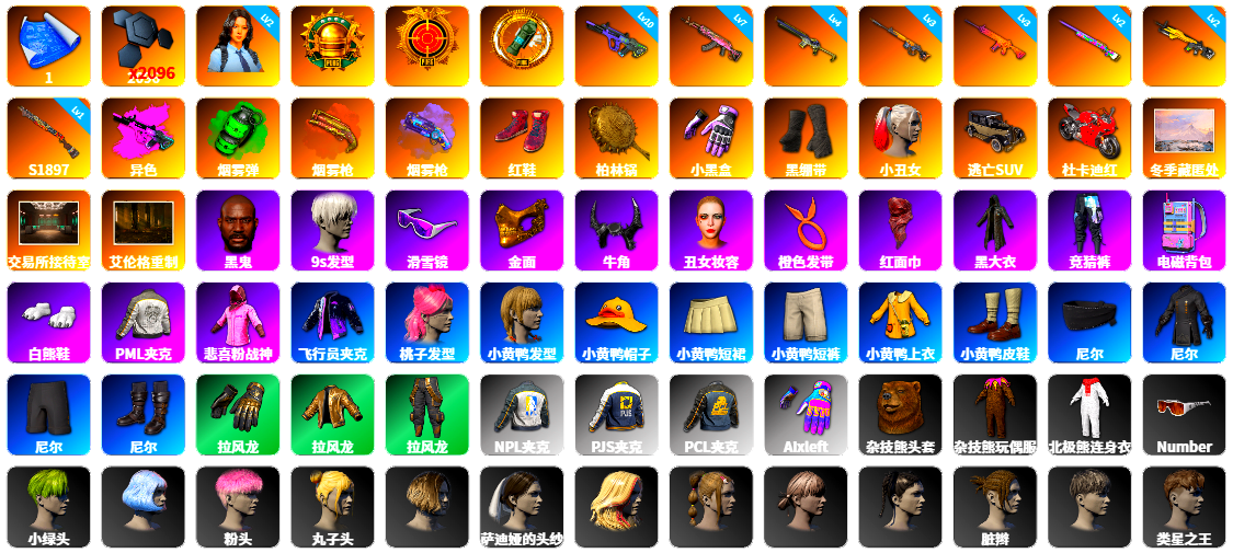 1张图纸 2096聚合物 2级瀚娜 10级霓虹AUG 7级火麒麟 4级沙悟净MINI 3级齿轮炮 3级南瓜M4 2级彩虹M24 2级小兔MK12 1级烈日灼烧-S1897 霓虹AUG(异色) 翡翠色烟雾弹 深红狂怒之雾-M79 紫色魔法迷雾-M79 柏林鞋 柏林锅 小黑盒 黑绷带 小丑女 杜卡迪红 冬季藏匿处 交易所接待室 黑鬼 9s发型 滑雪镜 金面 牛角 橙色发带 红面巾 黑大衣 竞猜裤 电磁背包 白熊鞋 粉战神 阿狸 小黄鸭 尼尔 拉风龙 小绿头 粉头 丸子头 脏辫 爱的主打歌 青海摇 小兔学院 悲喜 绷带AK 滑雪帽 西游记 枪炮洗礼