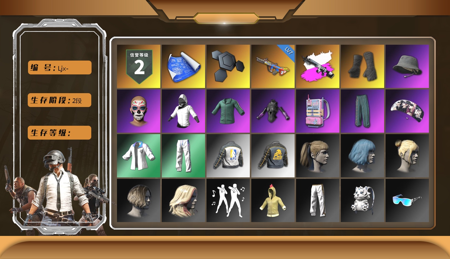 6级南瓜M4 6级刻耳柏洛斯M249 2级塞壬平底锅 1级多利安 1级水麒麟 1级孙悟空M24 1级午夜惊魂98K 1级魔咒之力Mk12 1级时空使者M4 1级暗影之主Mk12 品红色烟雾弹 柏林鞋 布加迪跑车 杜卡迪红 陈列室 交易所接待室 9张图纸 15507聚合物 黑鬼 滑雪镜 金面 橙色发带 红面巾 黑大衣 白战神 发光手臂 滑雪帽 拉风龙 小马尾 丸子头 西游记 青海摇 小兔学院 绷带AK