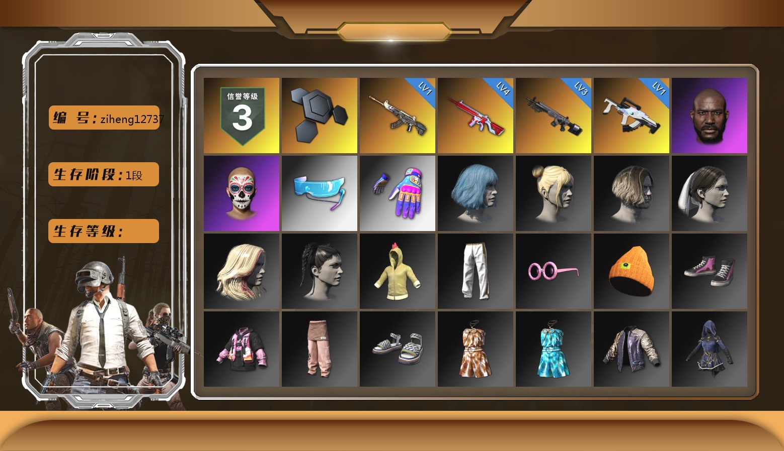 4级无信号M4 3级暗影之主Mk12 1级恶魔ACE 1级冰域Groza 3388聚合物 黑鬼 丸子头 小兔学院 西游记